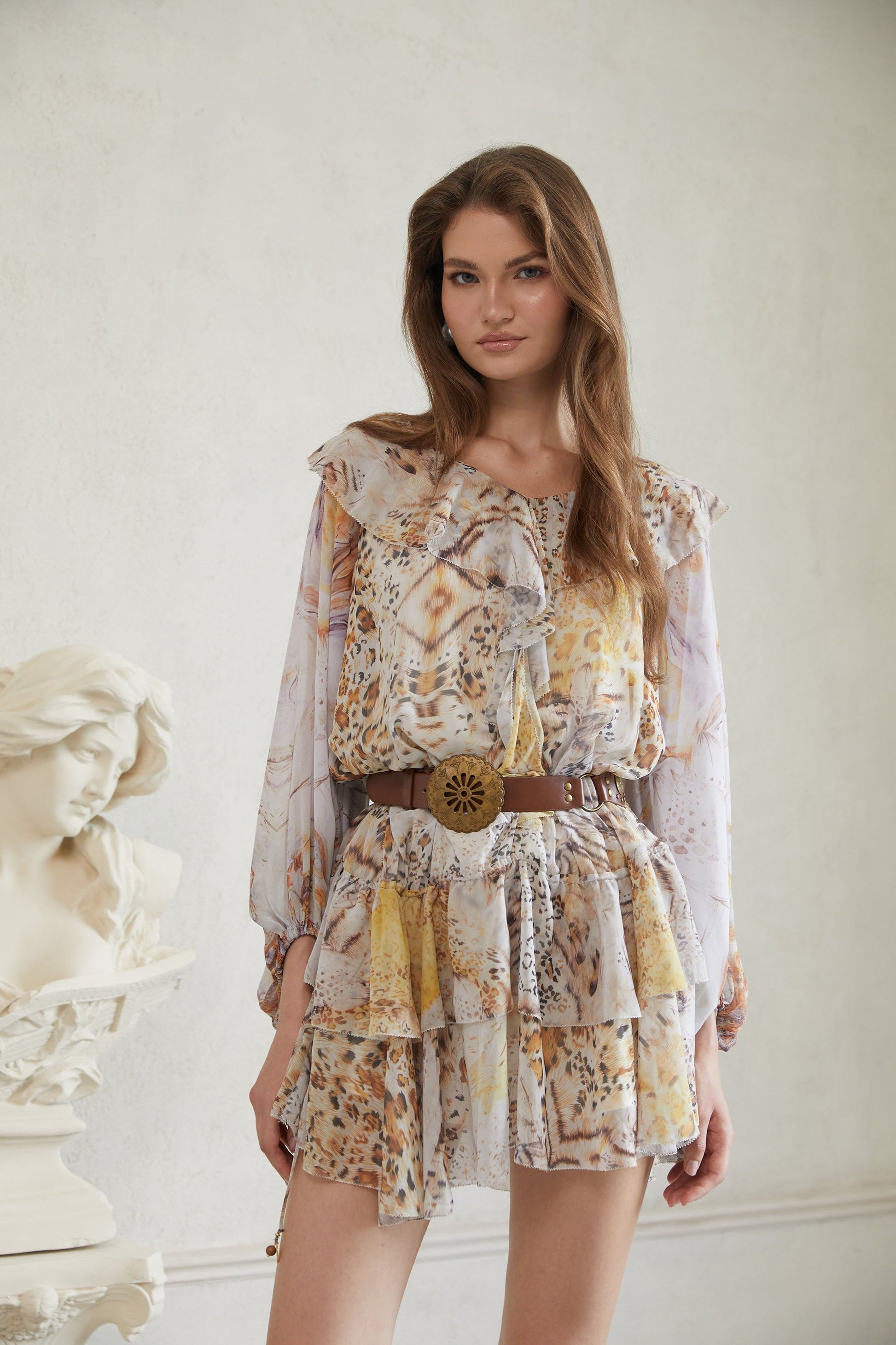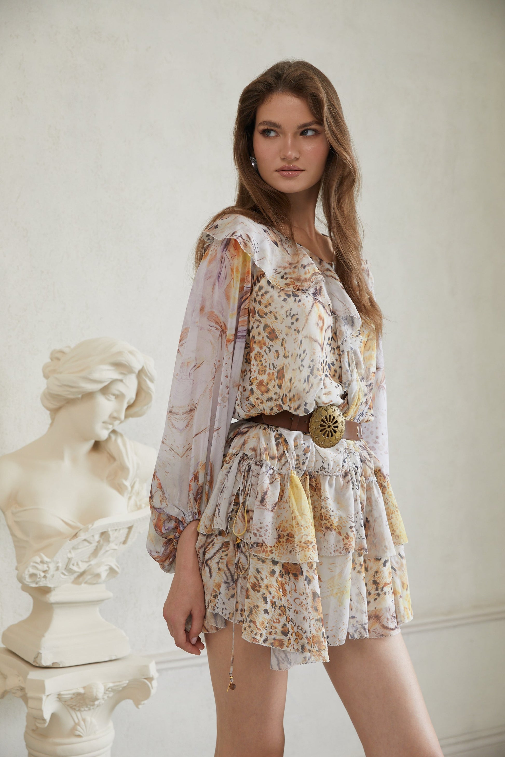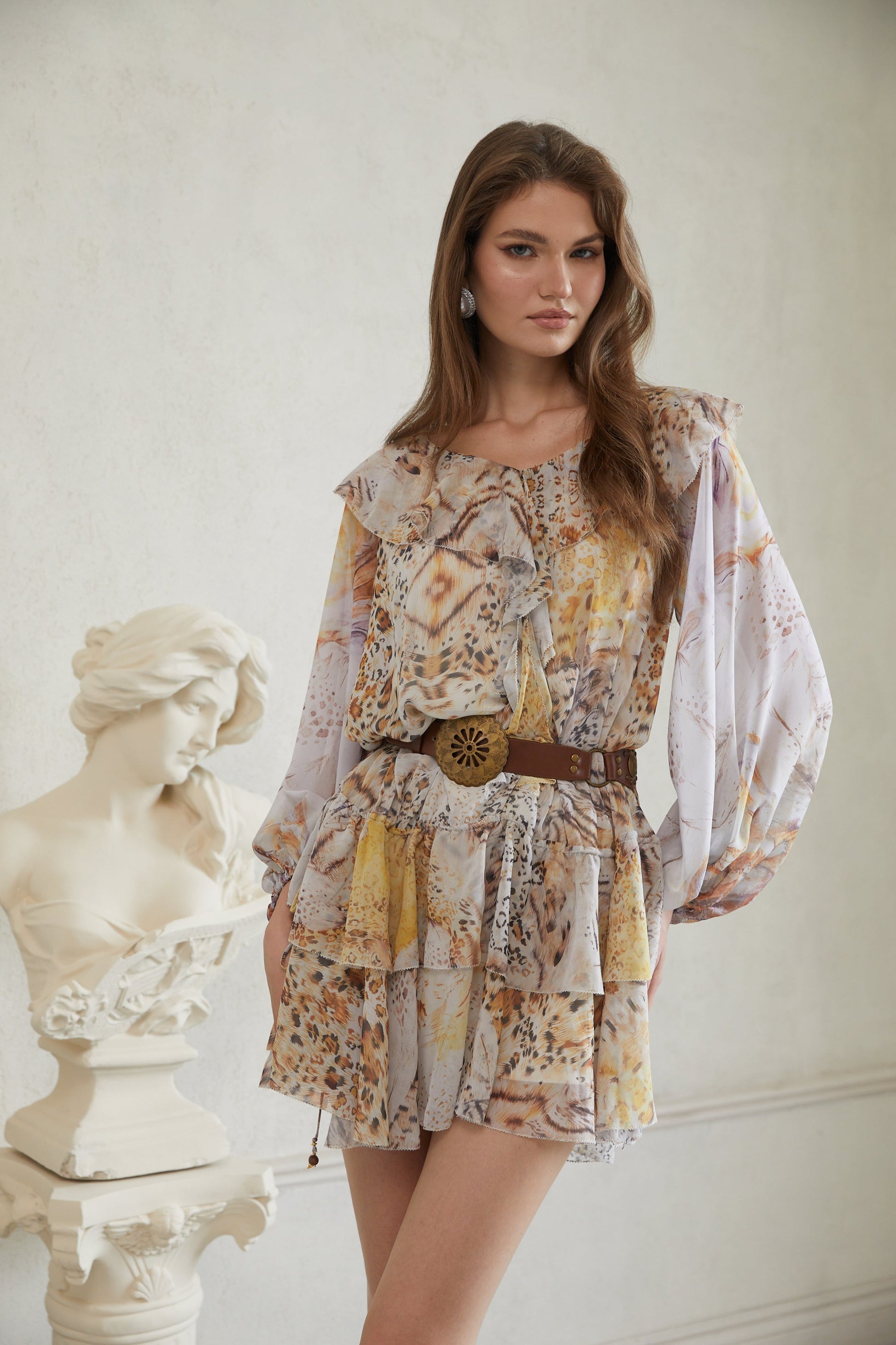 Faustine Grey Leopard Print Chiffon Mini Dress