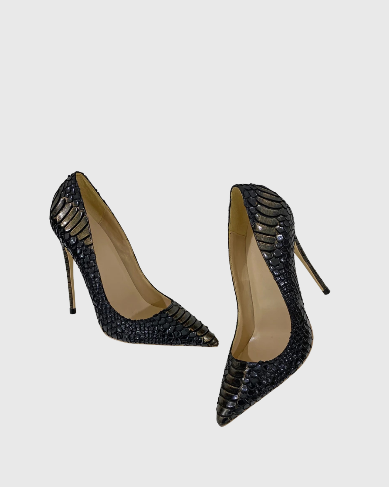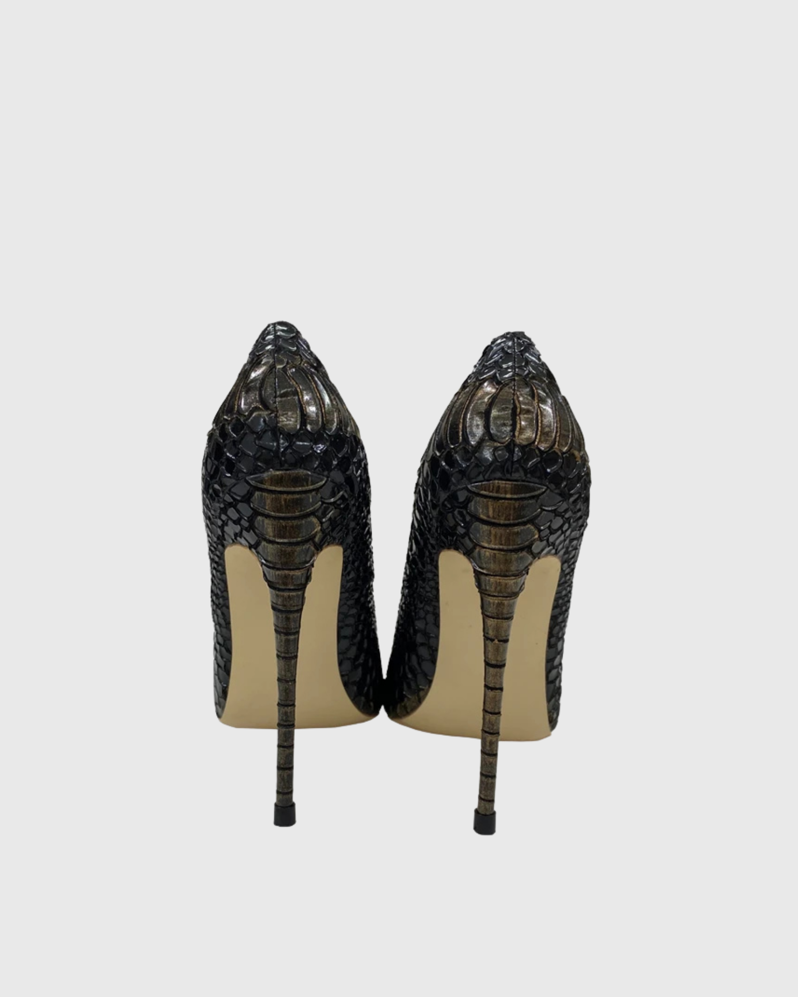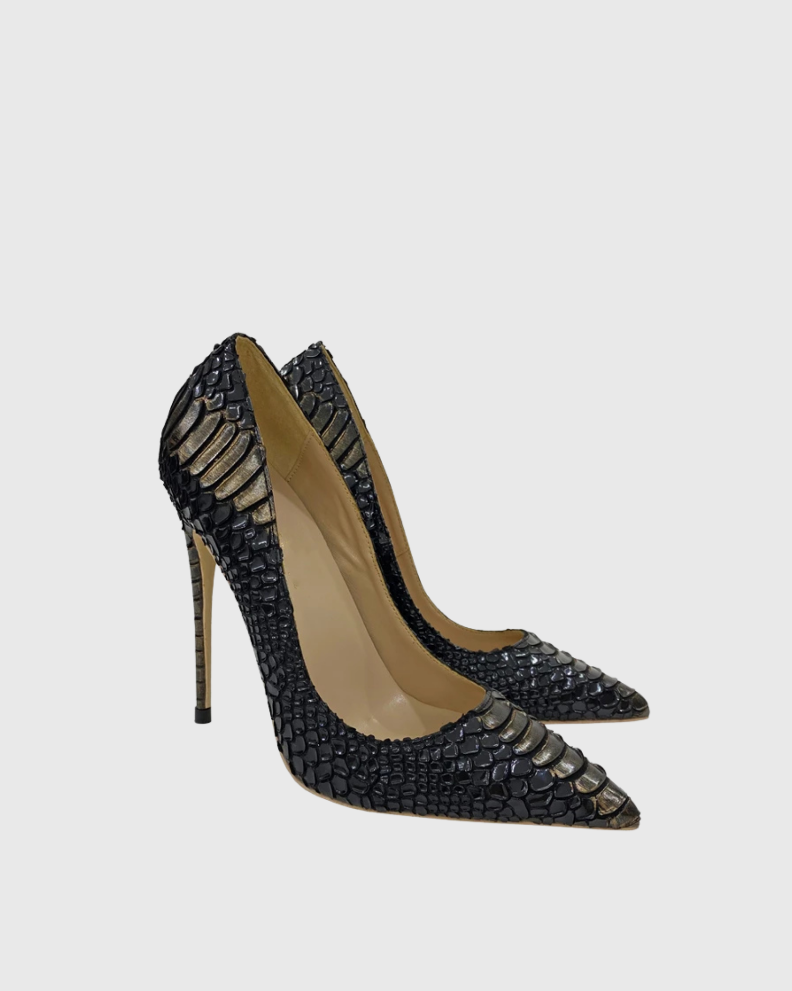 Own the room with our Faye Snake Texture Pumps! These stunning pumps feature a striking snake texture that adds a touch of edginess to any outfit. The sleek design and comfortable heel height make them perfect for all-day wear. Elevate your style and confidence with our Faye Pumps!