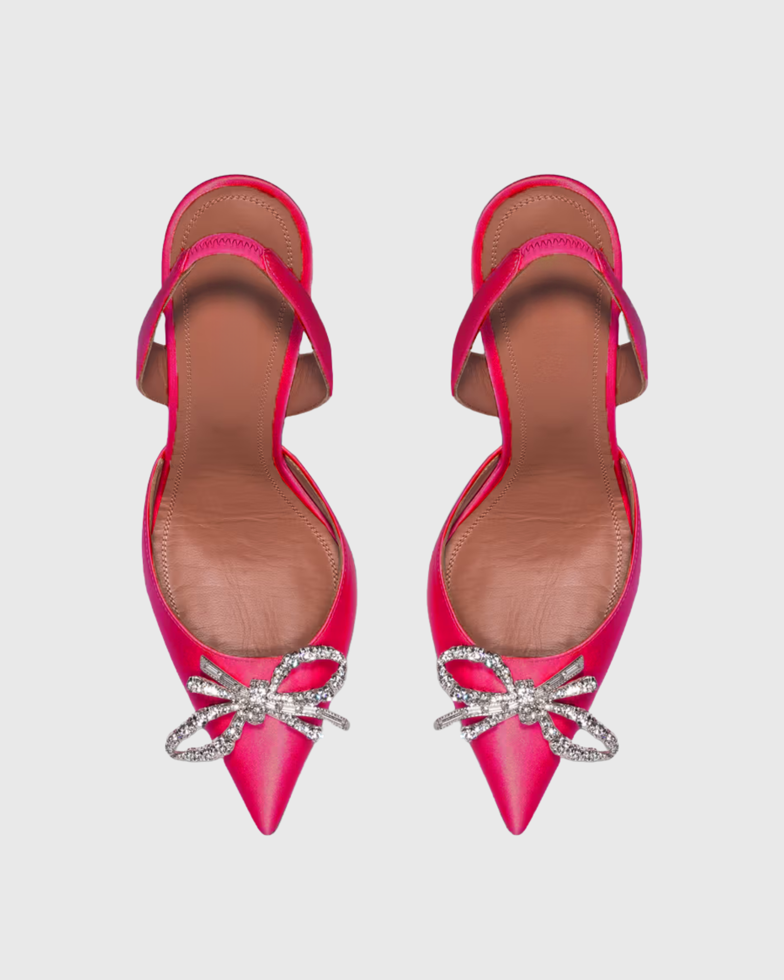 Fedora Rhinestone Bow Flared Heels In Hot Pink