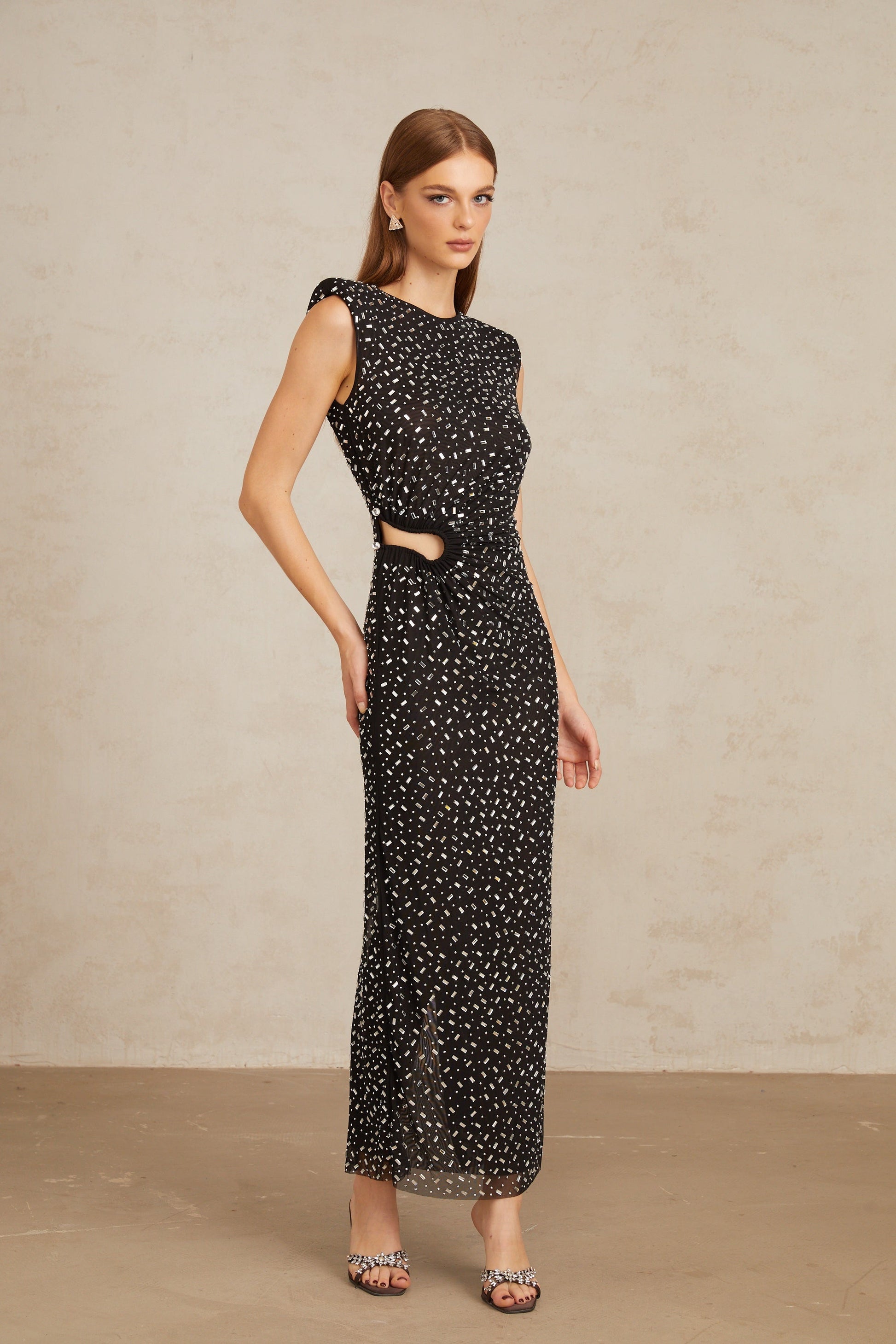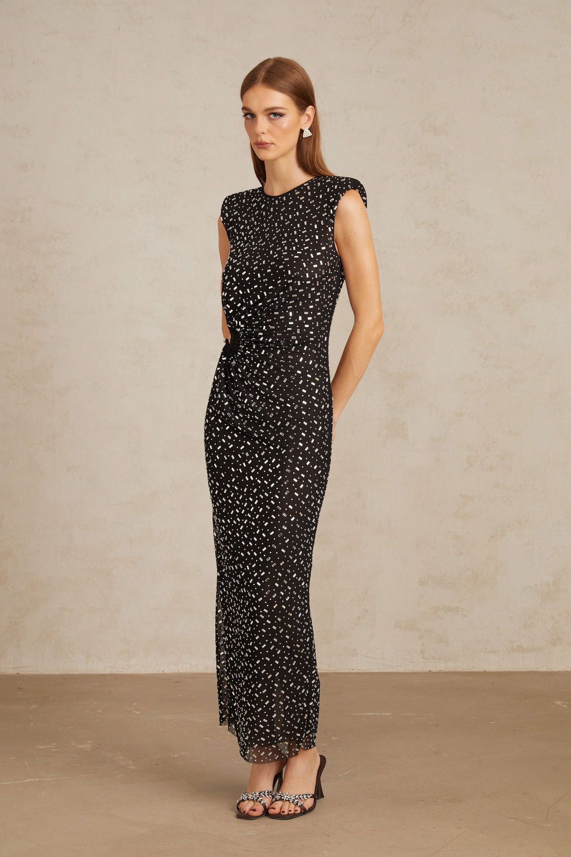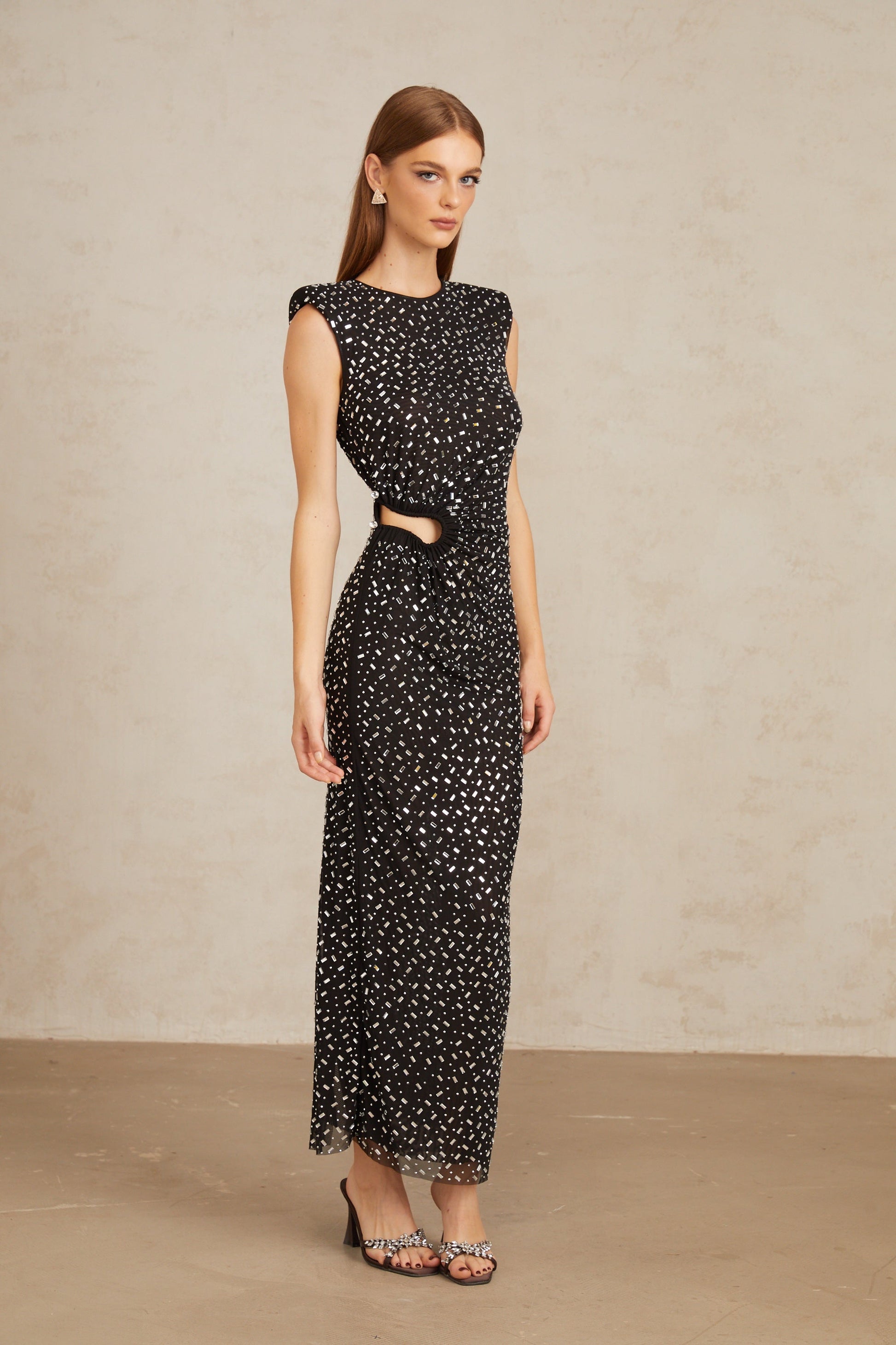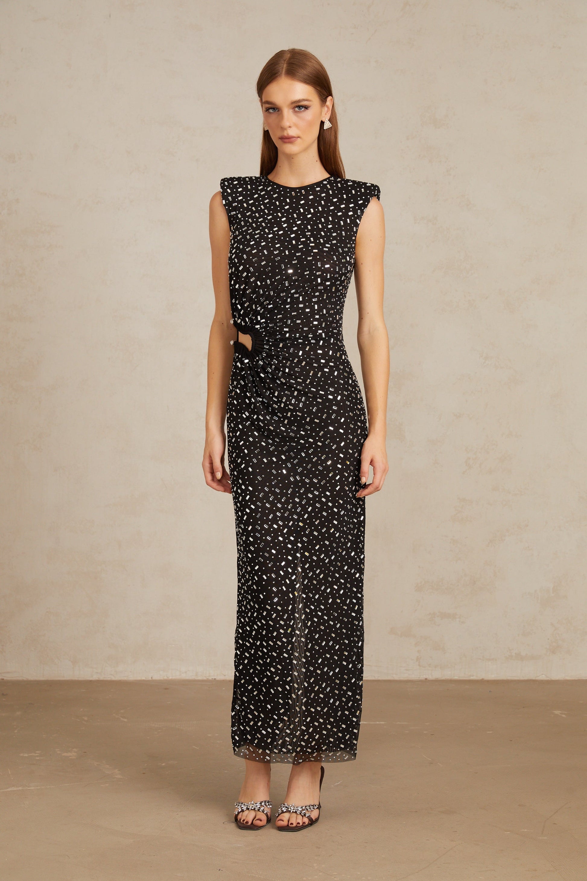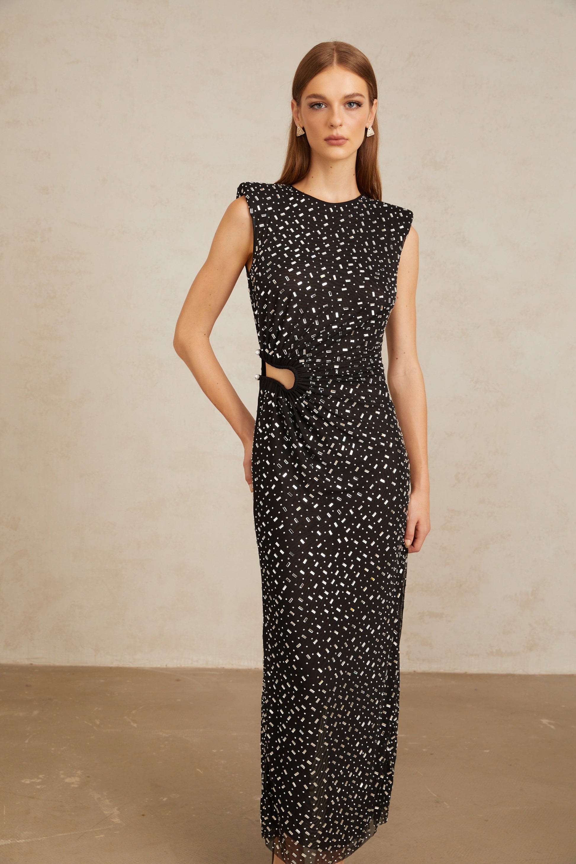 Félicie Black Embellished Mesh Maxi Gown