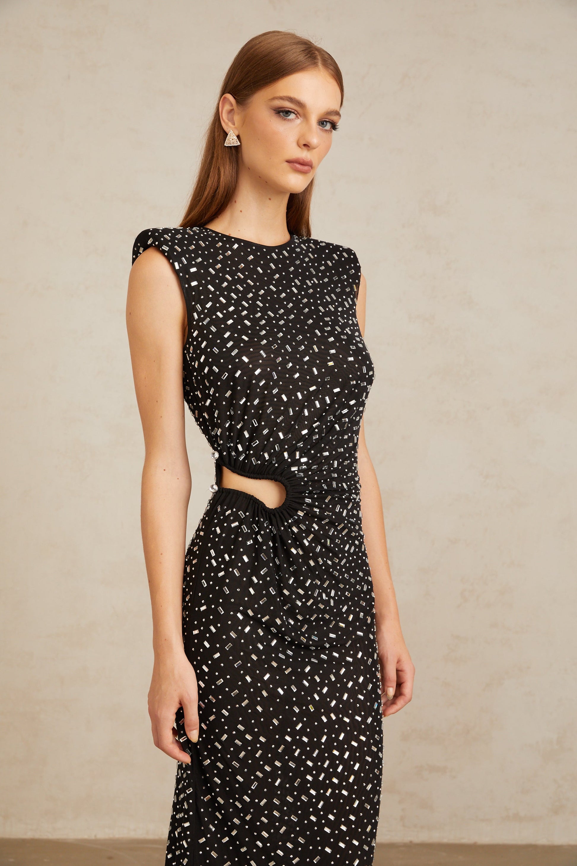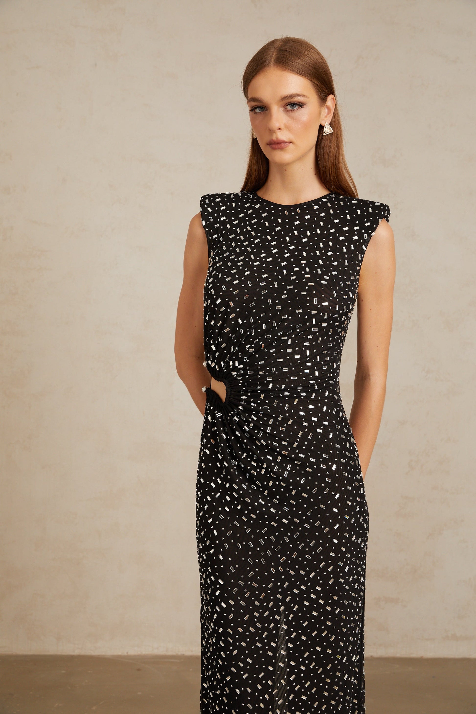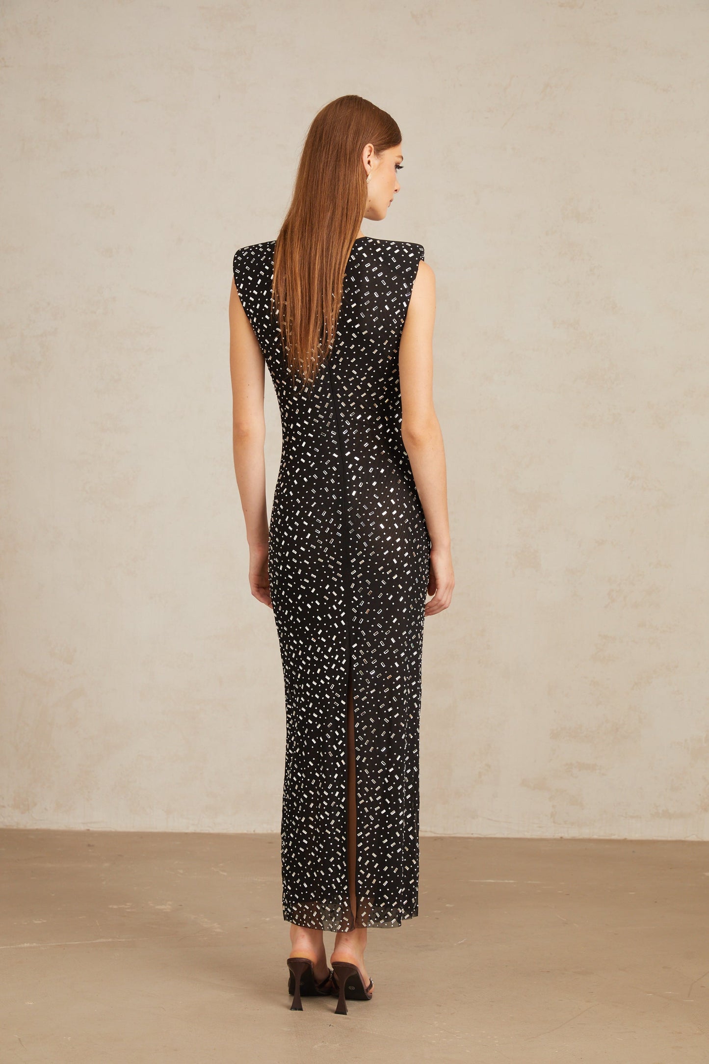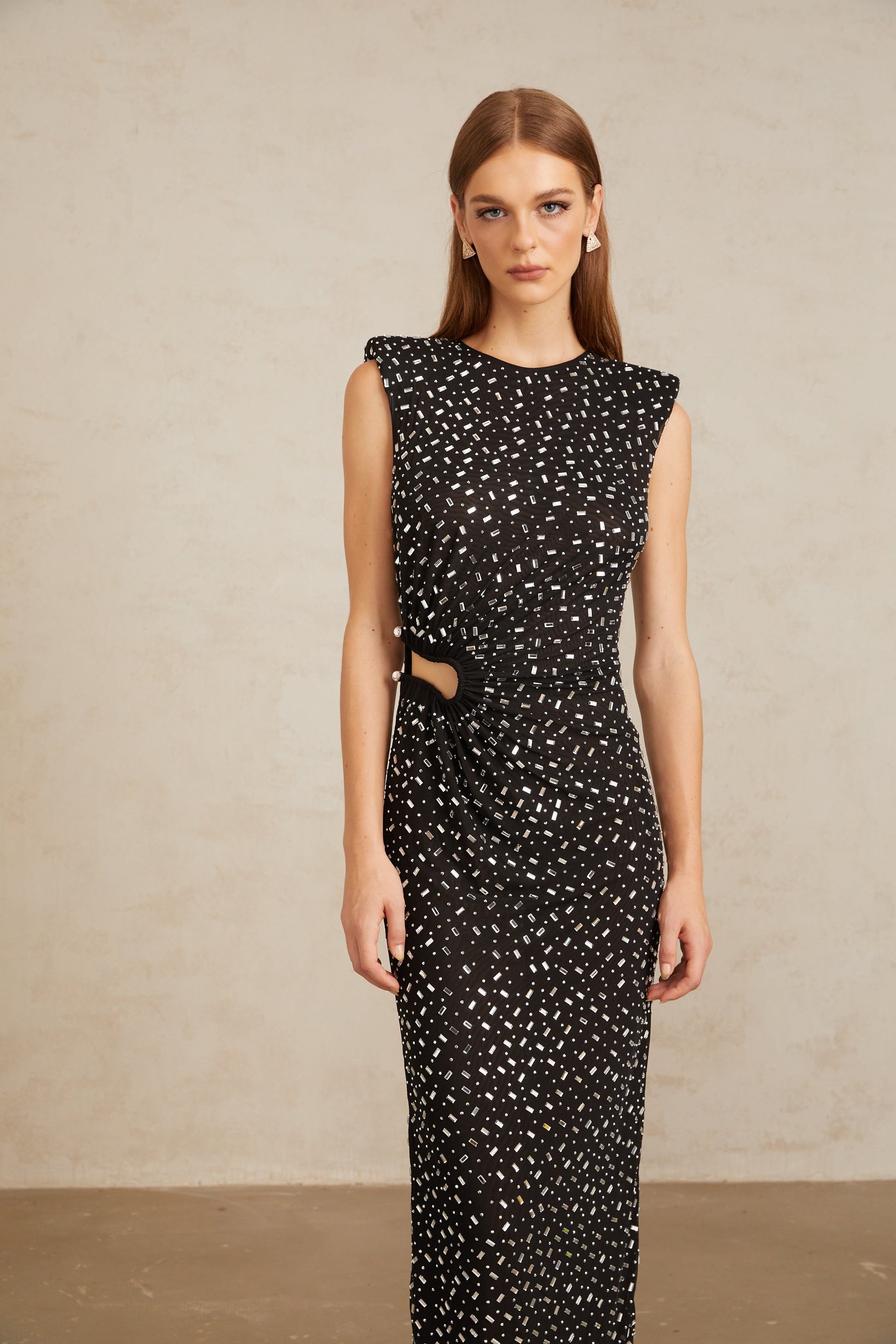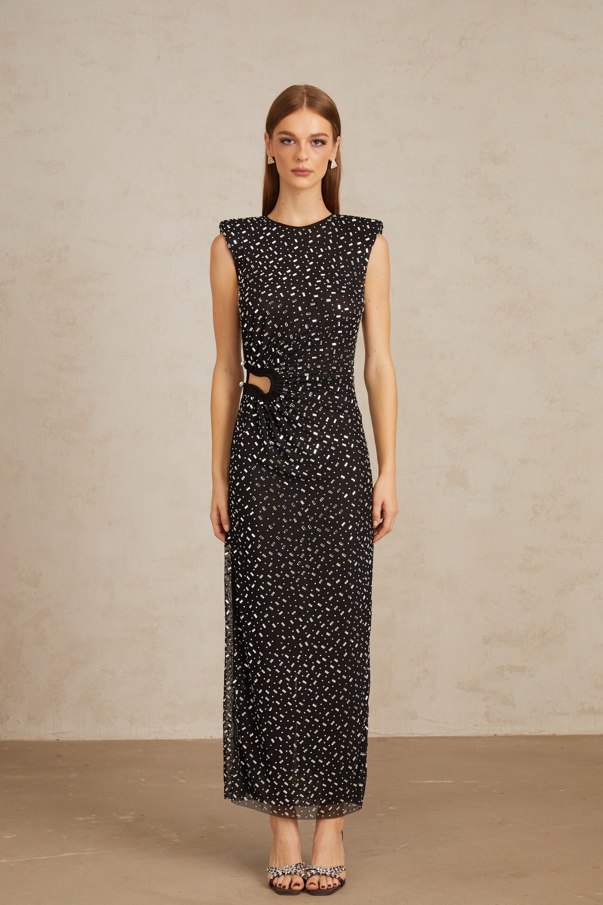 Félicie Black Embellished Mesh Maxi Gown