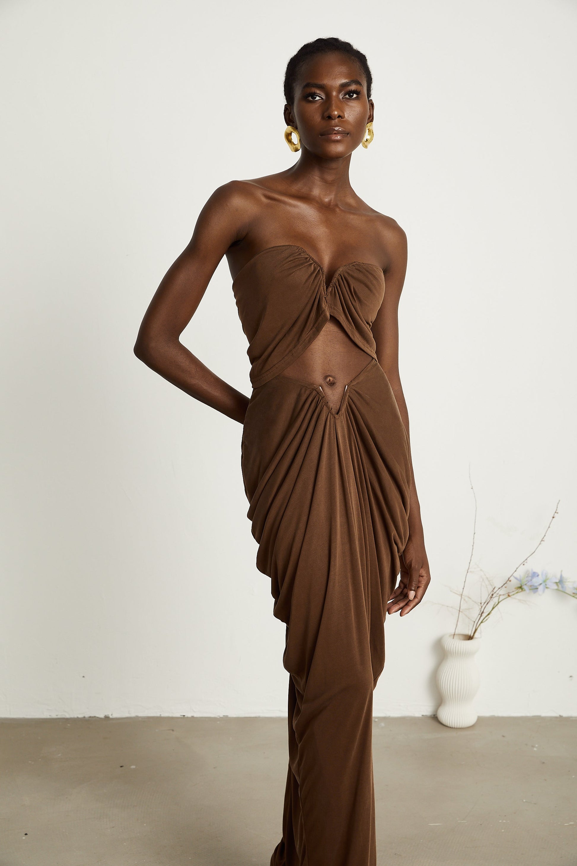 Félicité brown ruched top & skirt matching set