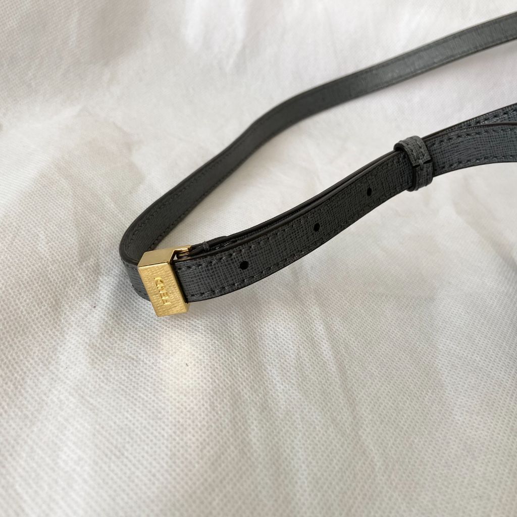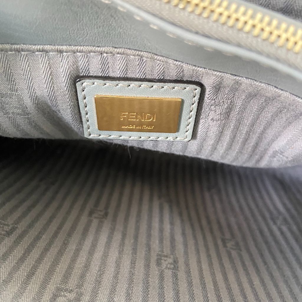 Description: Fendi Grey Leather Small 2Jours Tote, frafted from grey leather, the bag has double handles and detachable strap and tag. Interior lined with fabric and finished with gold-tone hardware.