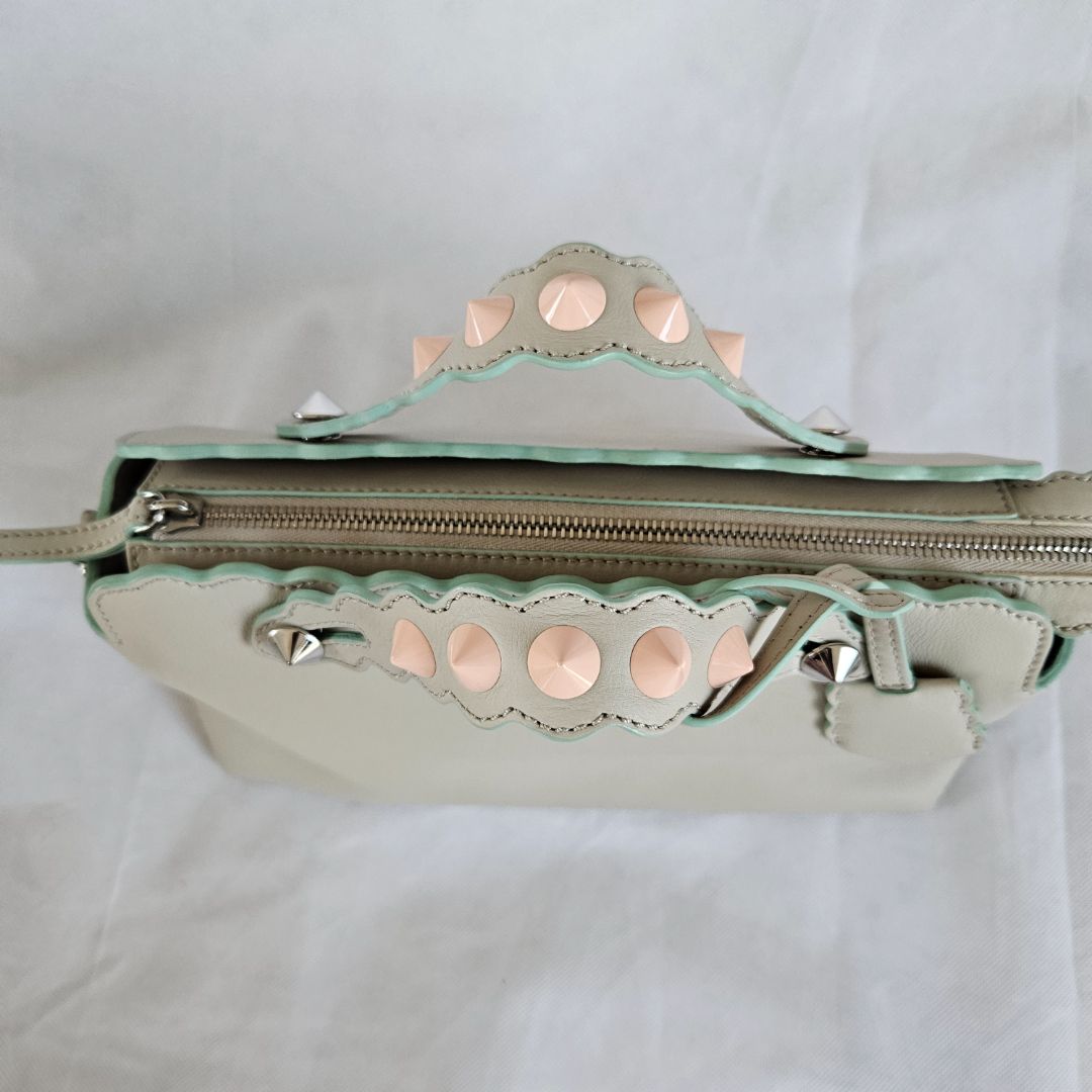 Fendi Grey By The Way bag featuring blue trim detailand pink studded detail on tophandle straps