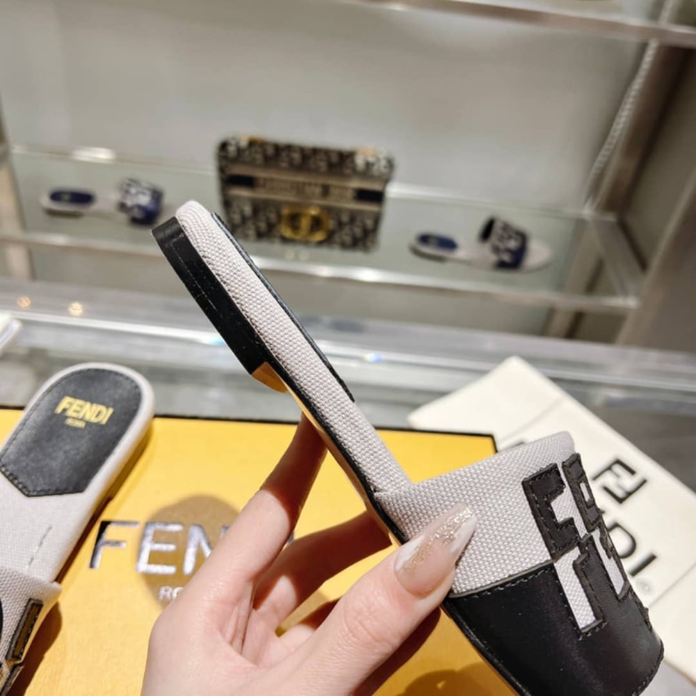 Decrease quantity for FENDI LOGO BICOLOR FLAT SANDALS WHITE