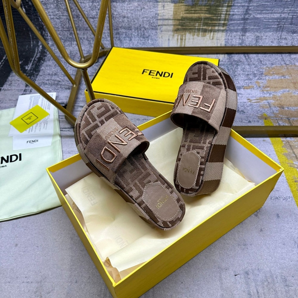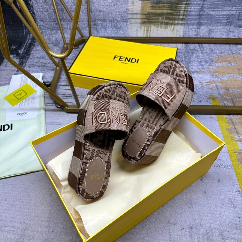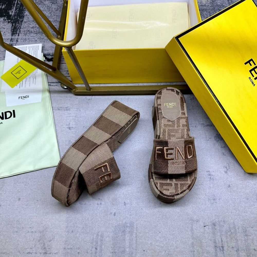 Increase quantity for FENDI SUNSHINE FLATFORM SLIDES BROWN 8R8515AORHF1P95