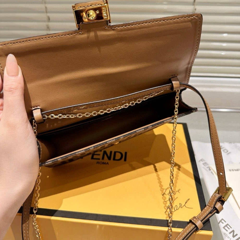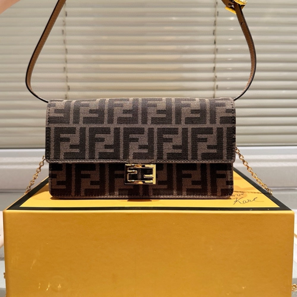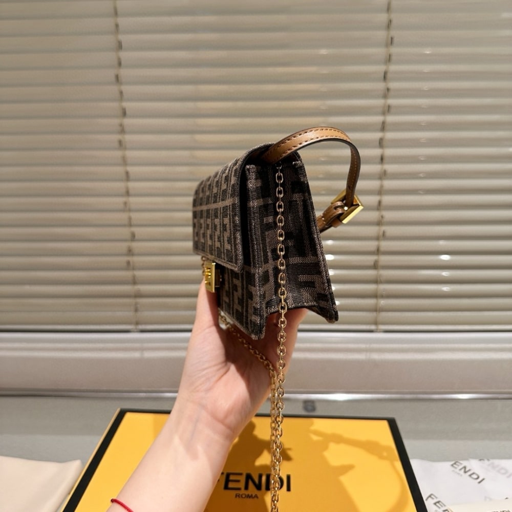 - Compact Baguette wallet with flap and FF clasp.