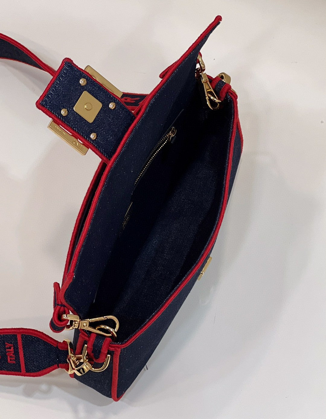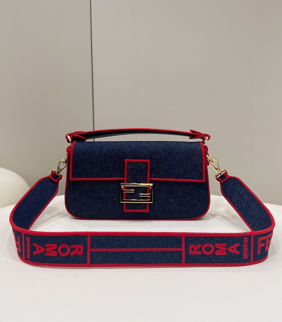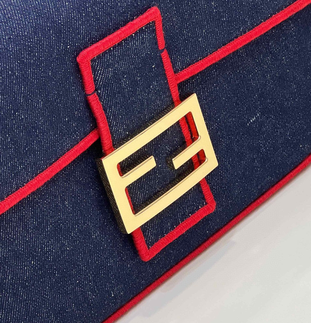 FND Baguette Blue Denim Red Border Bag For Woman 26cm/10in