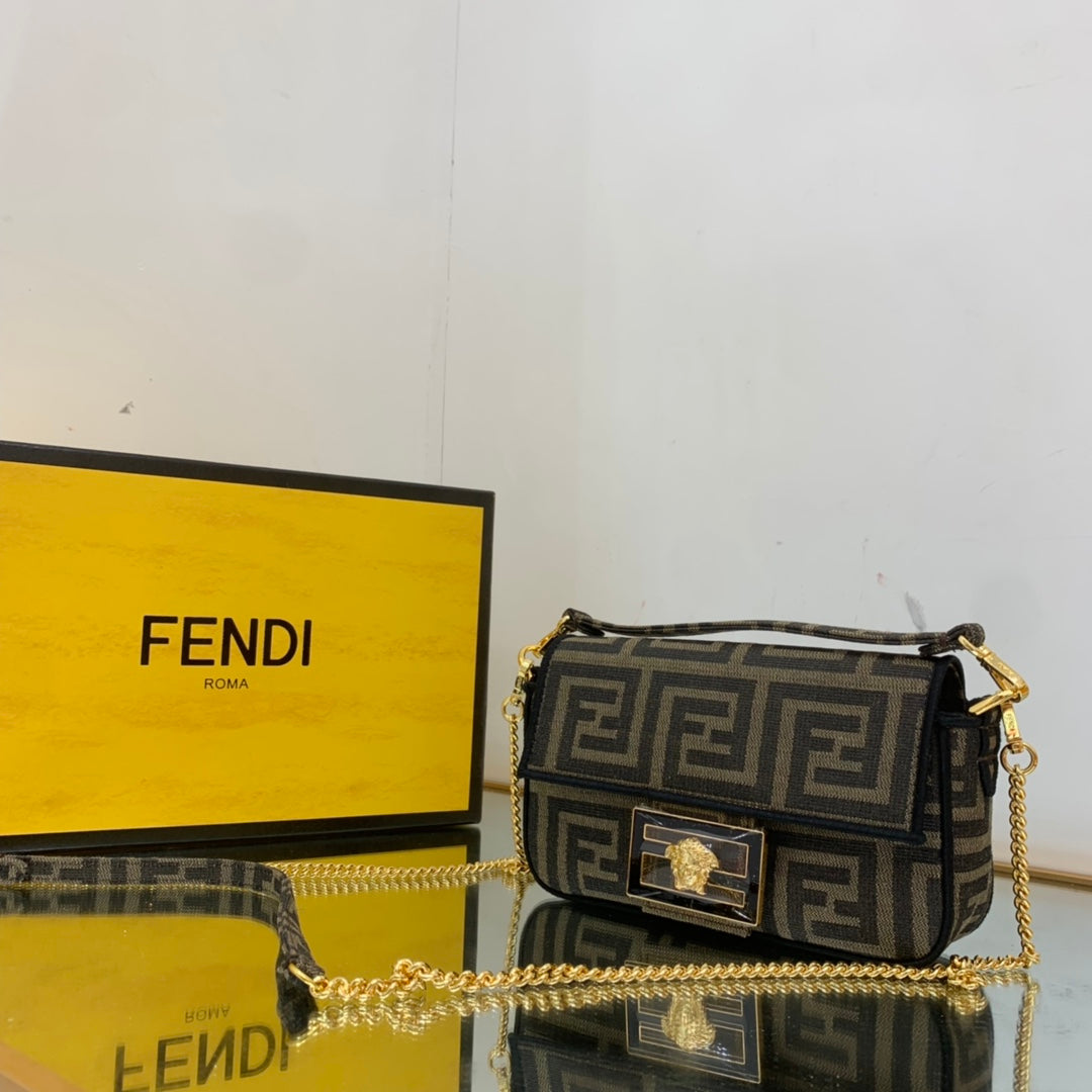 FND Baguette Brown fabric Brown Small Bag For Woman 18.5cm/7in