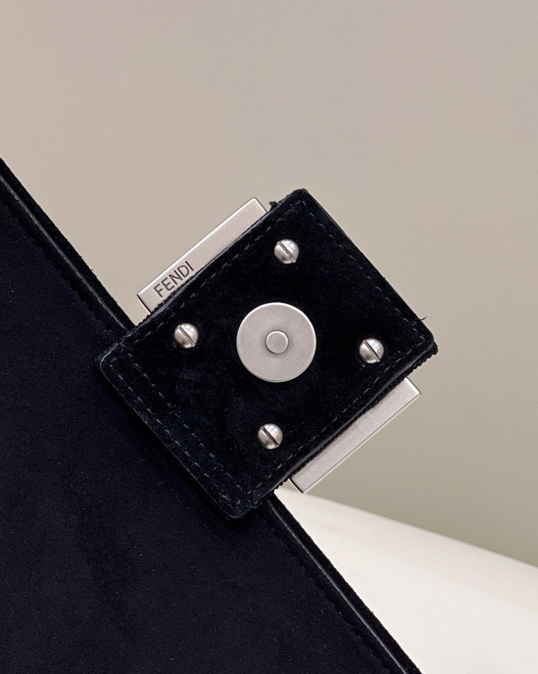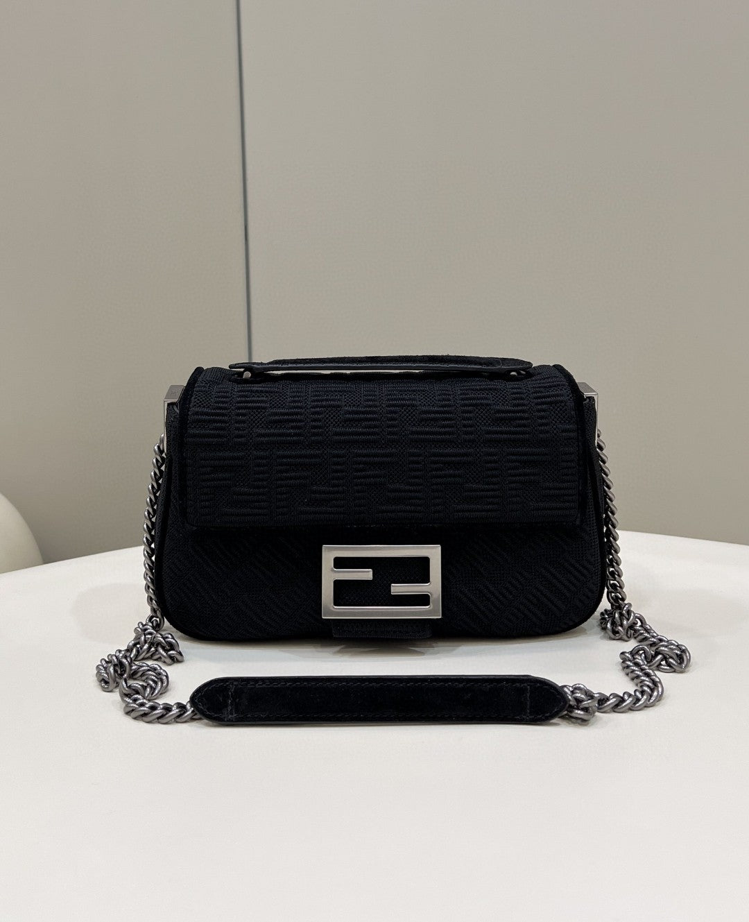 FI Baguette Chain Midi Black FF Fabric Bag For Woman 14.5cm/6in