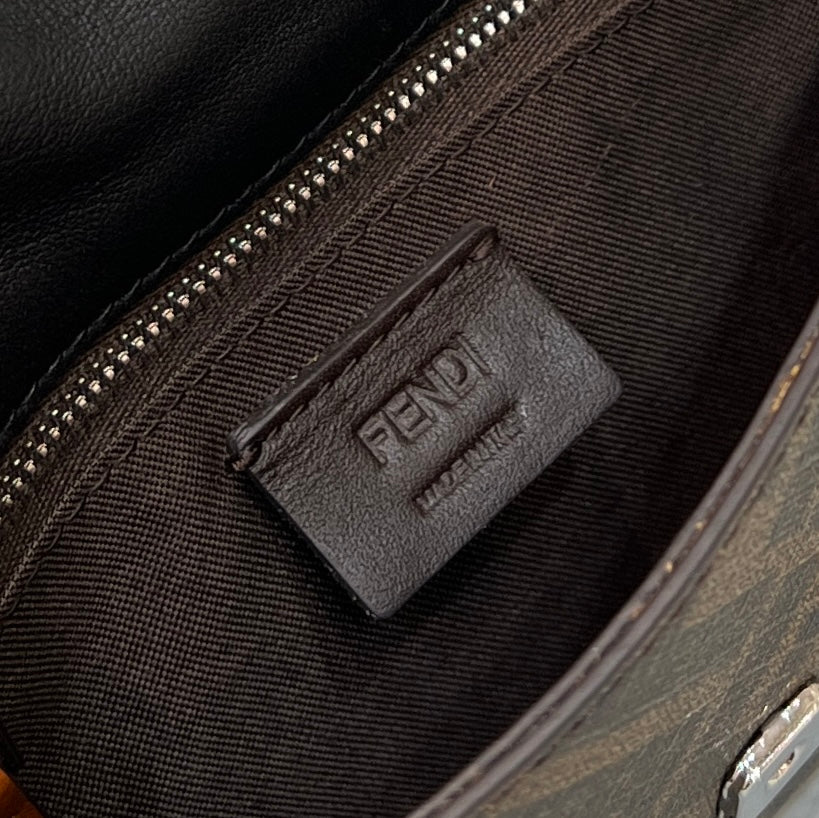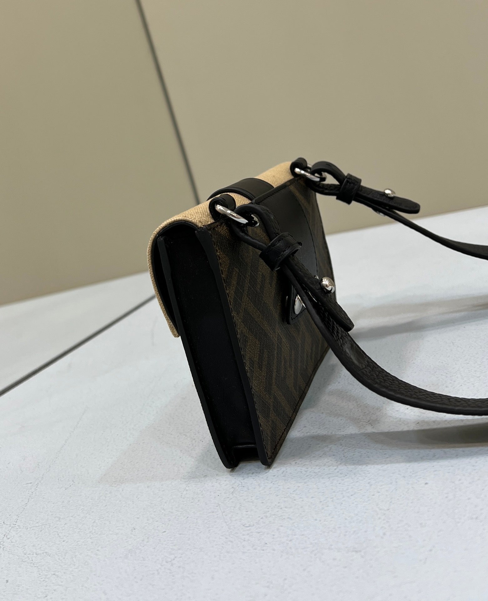 FND Baguette Pouch Brown fabric Black Pouch For Woman 16cm/6in