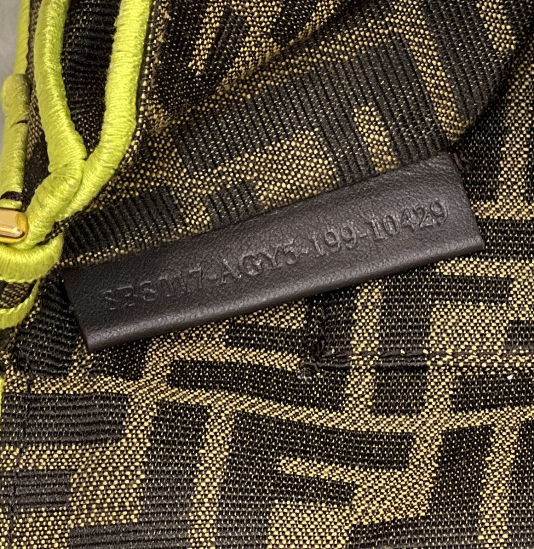 FND Baguette Small Brown Fabric Yellow Border Bag For Woman 18cm/7in