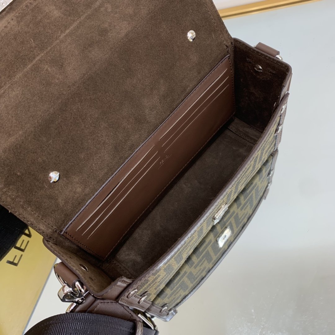 Baguette Soft Trunk bag made of fabric with jacquard FF motif. Flap with magnetic FF clasp.