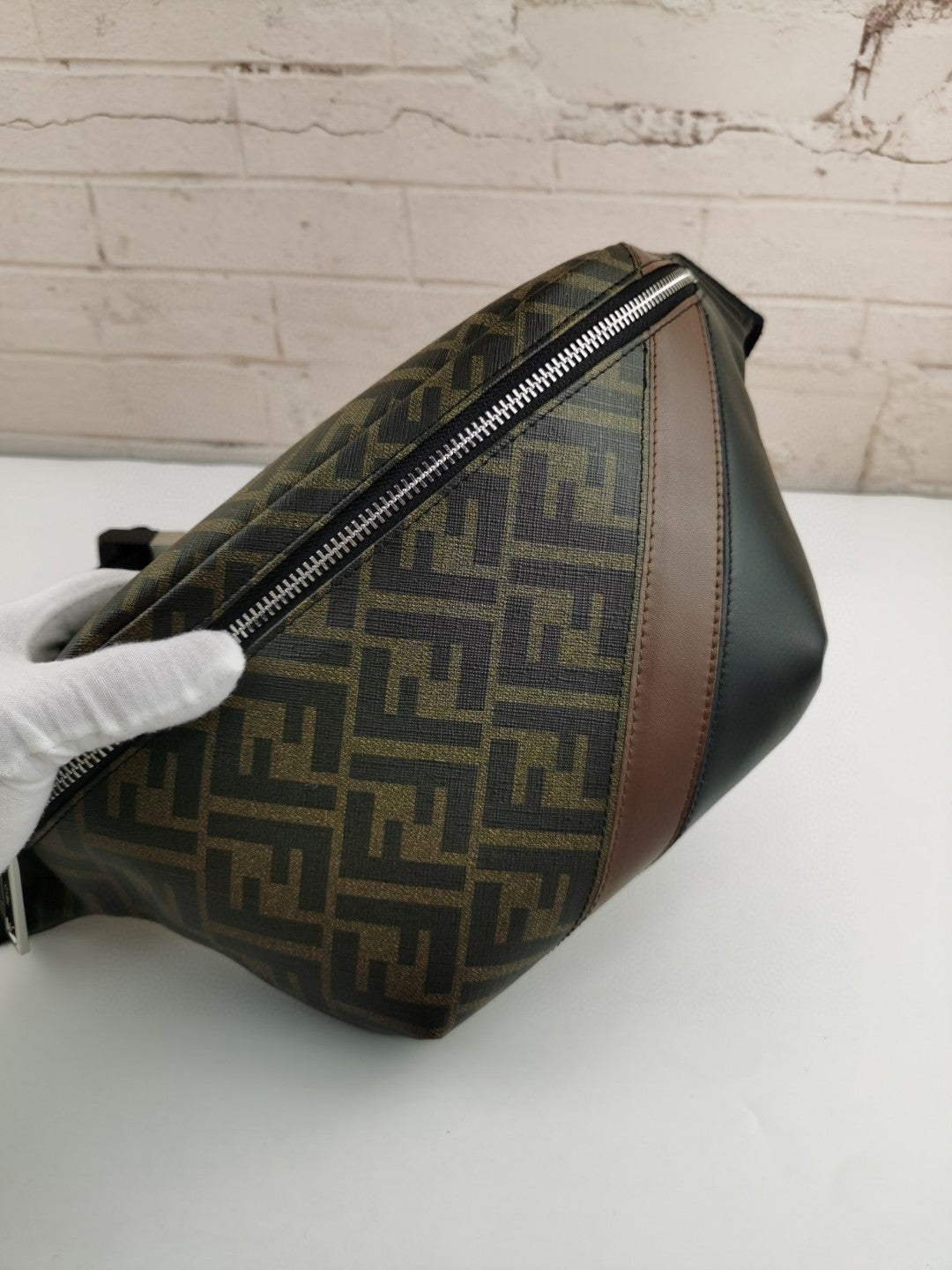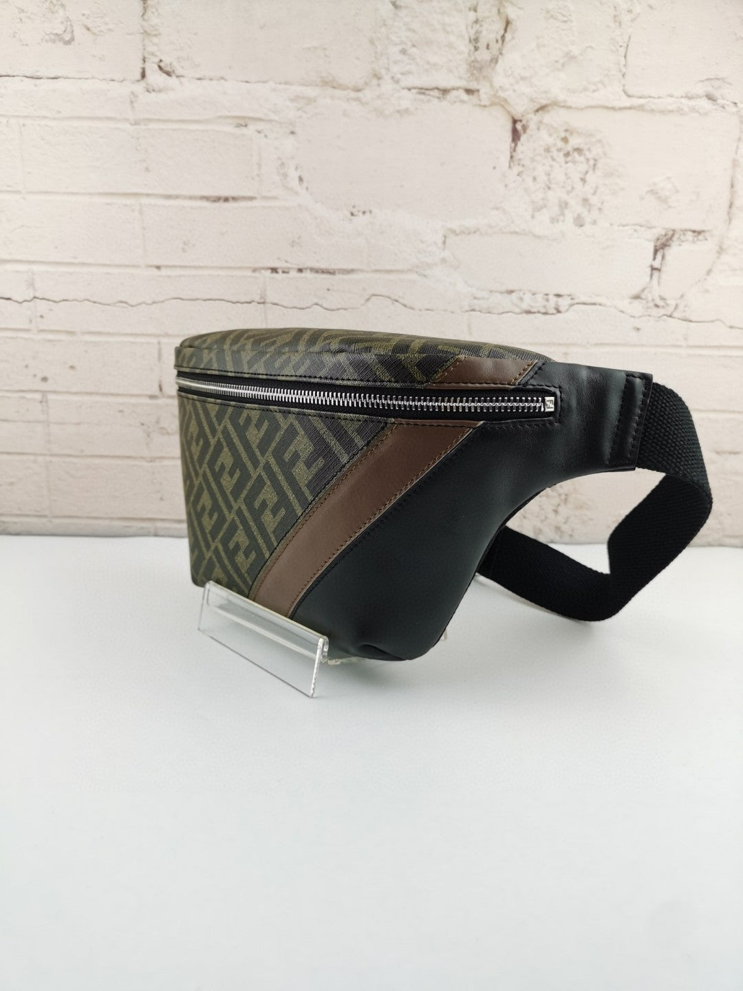Made of fabric with FF motif. Finished with black insert and inlaid detail in shades of Brown.