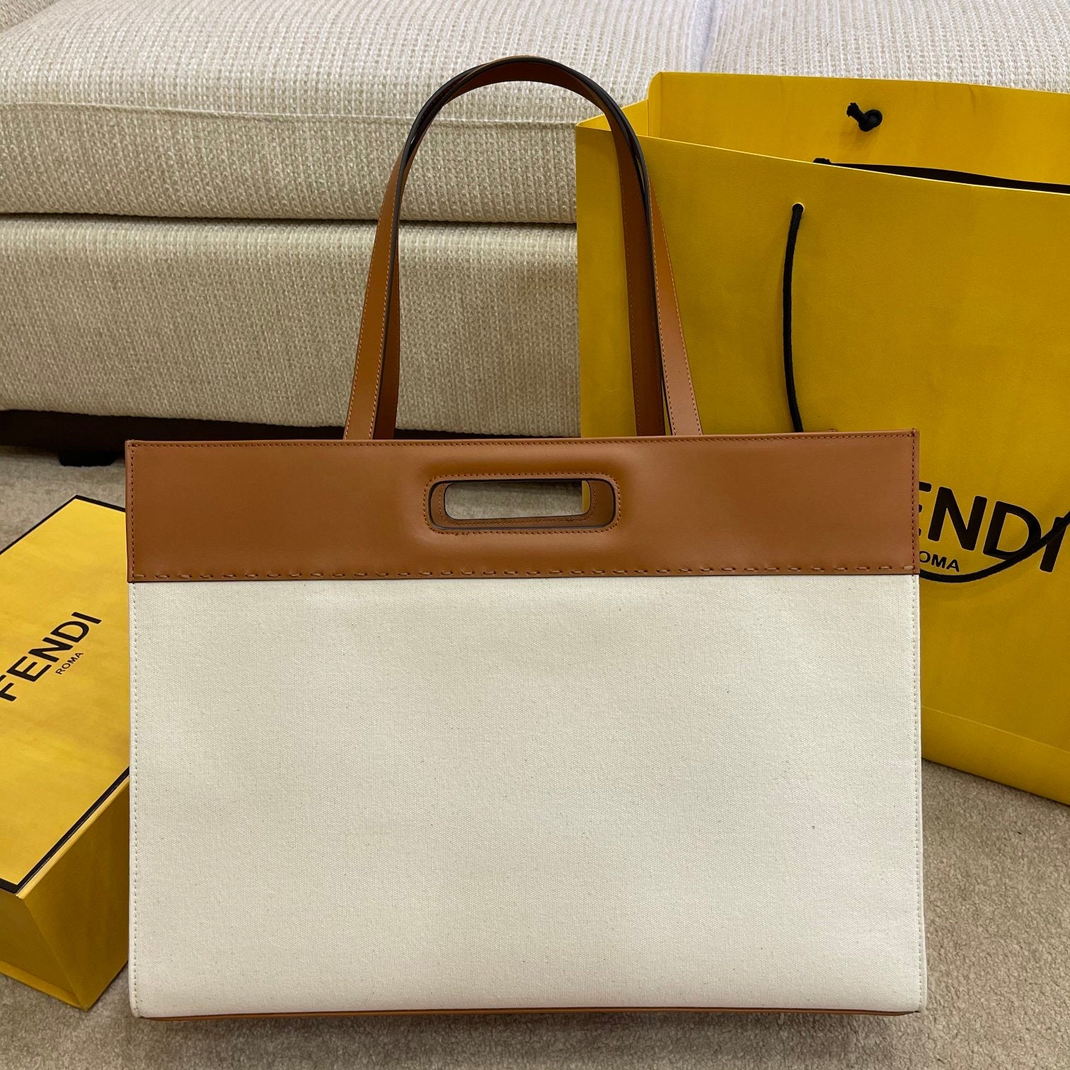 FND Canvas Tote Bag Beige/Brown For Women, Women’s Handbags 18.1in/46cm FF 7VA480