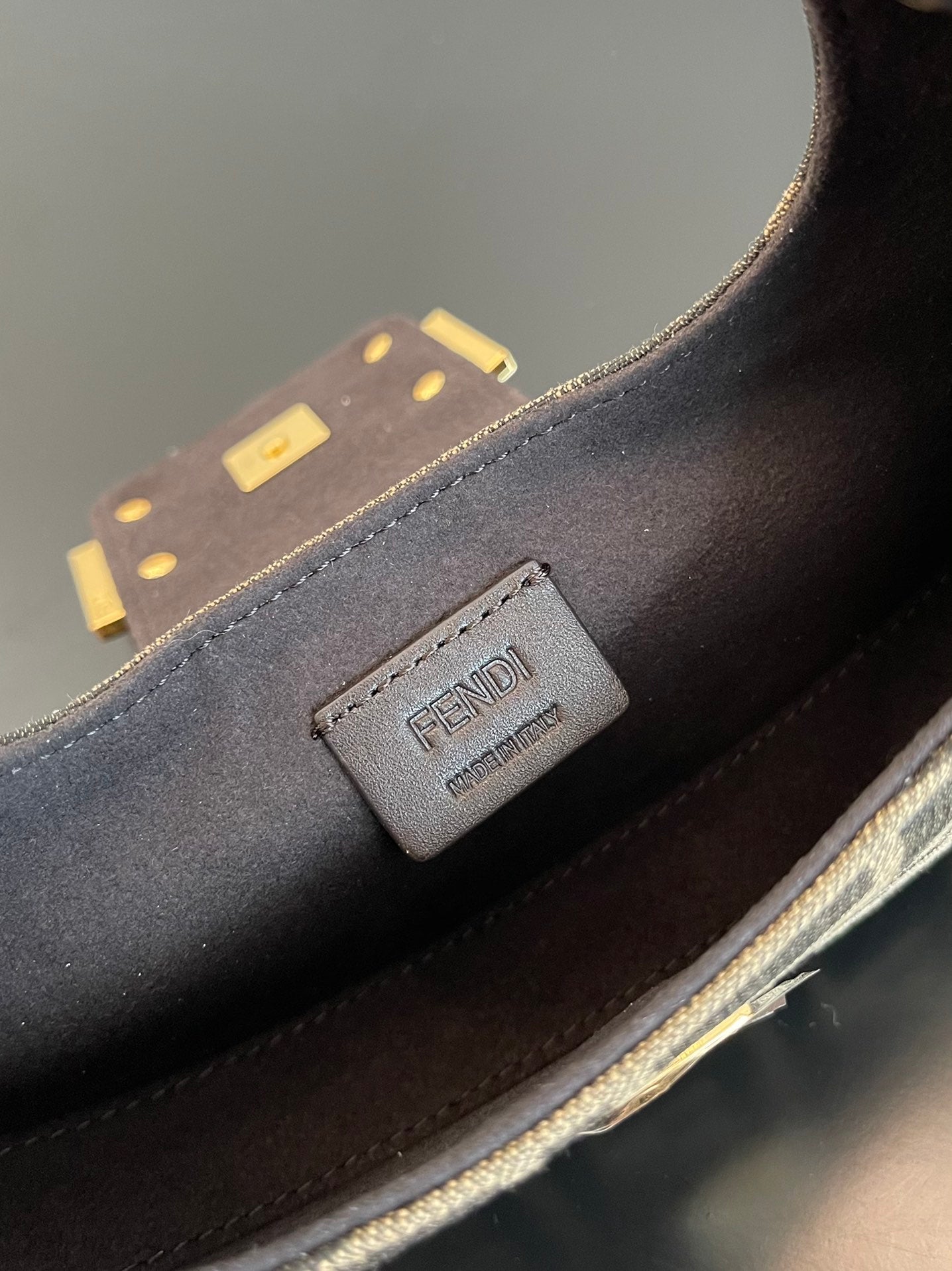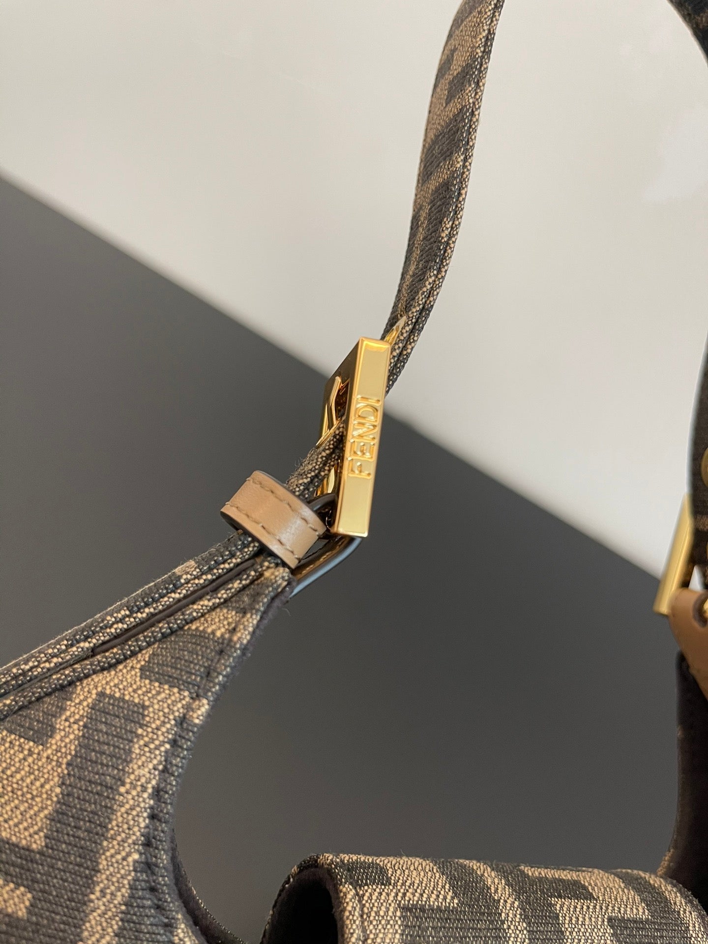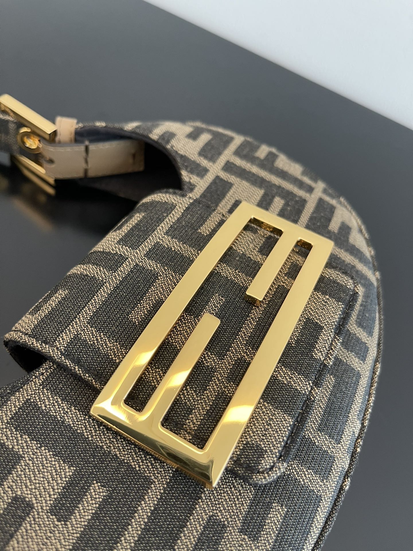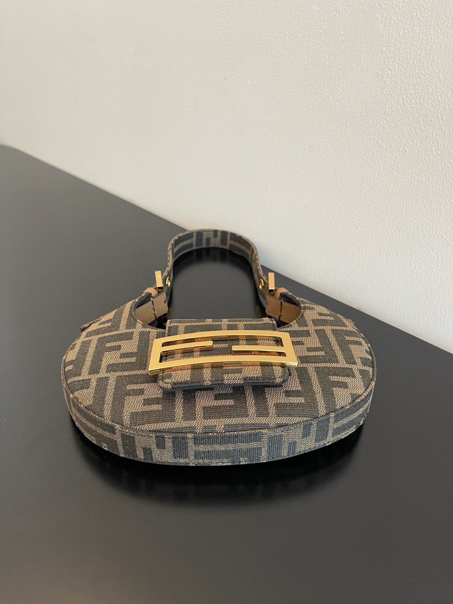 Mini Cookie hobo bag made of jacquard fabric with an iconic FF motif in brown, decorated with an FF clasp.