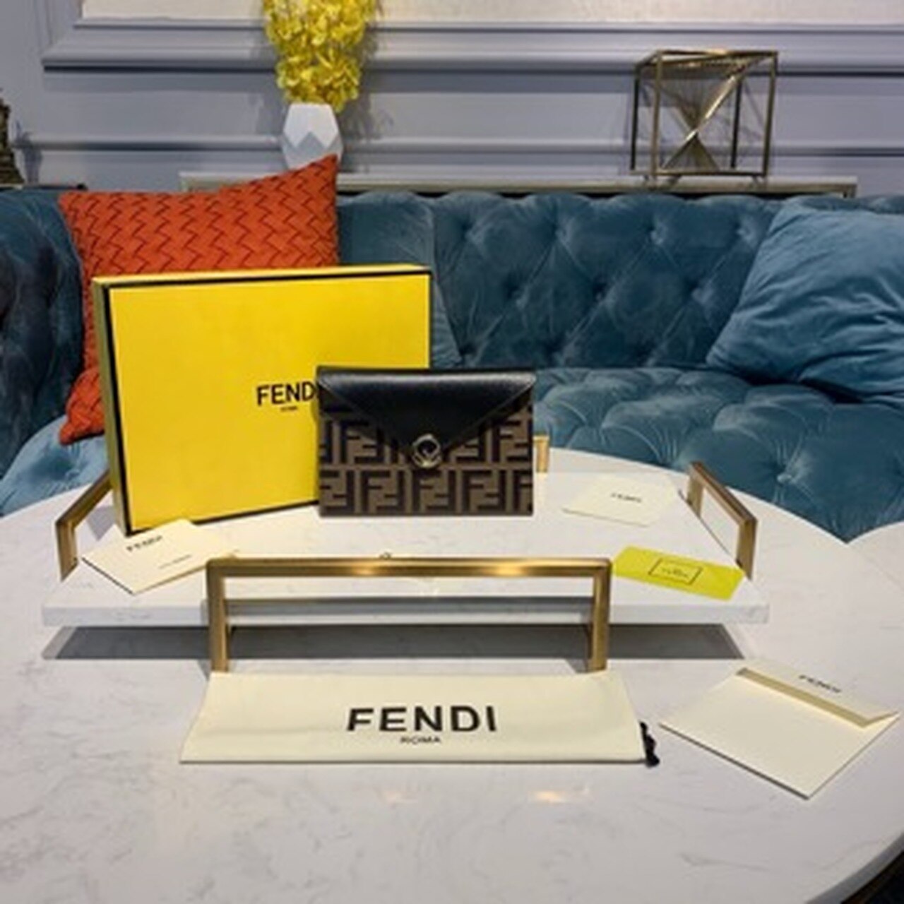 FND FF Embossed Envelope Wallet 9.4in/24cm Brown/Black For Women