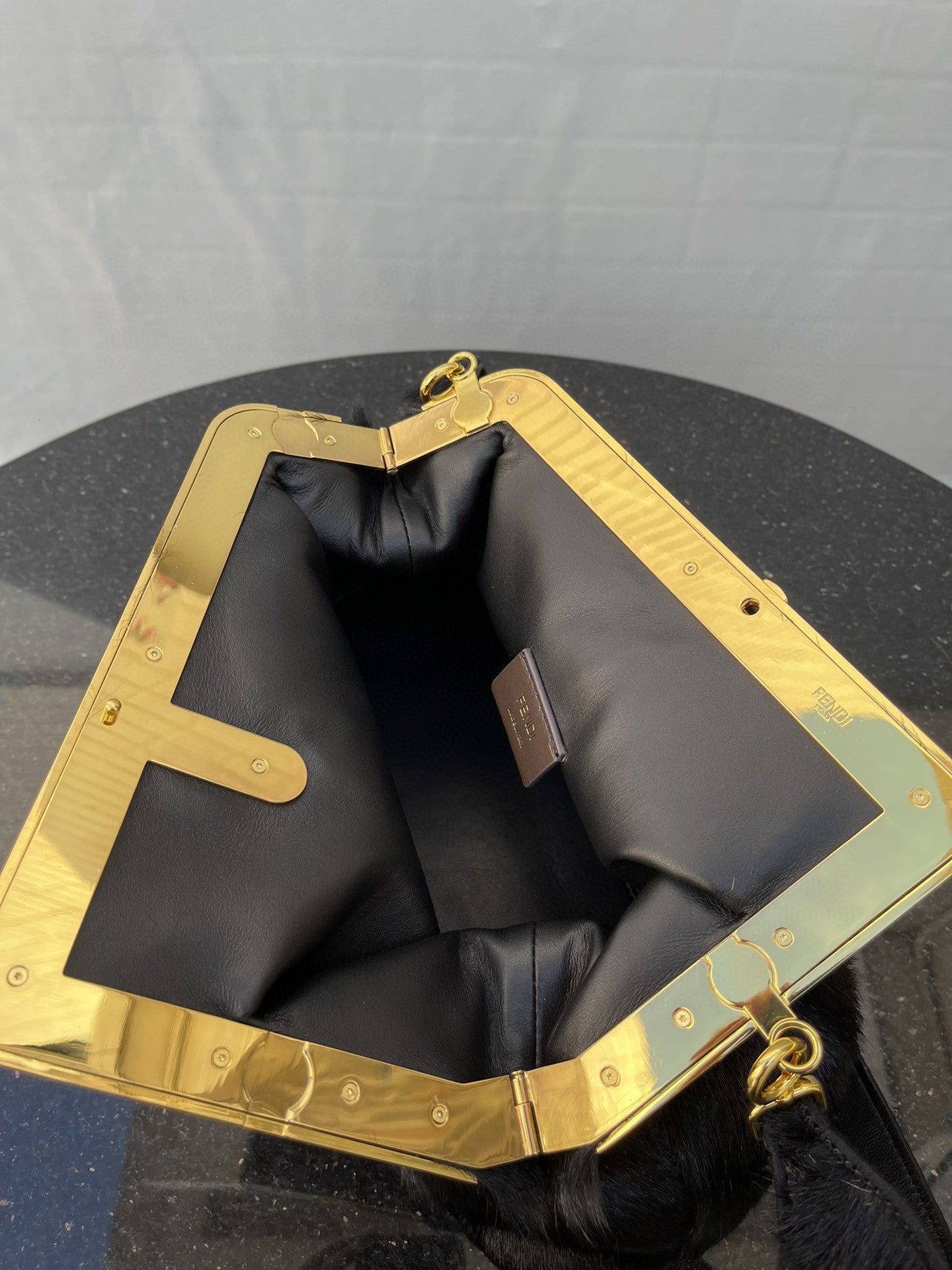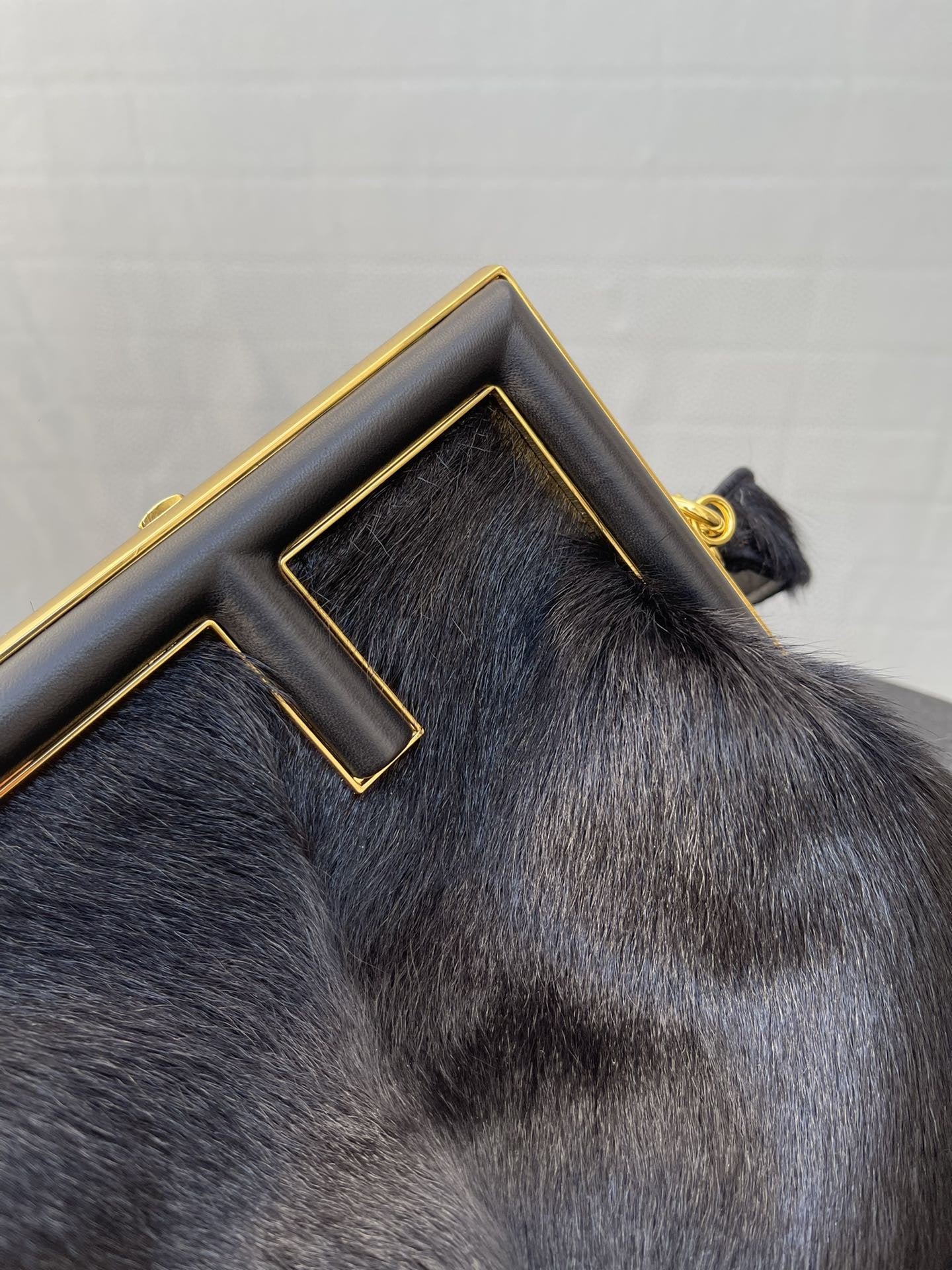 FND First Medium Black Fox Fur Bag For Woman 32.5cm/13in