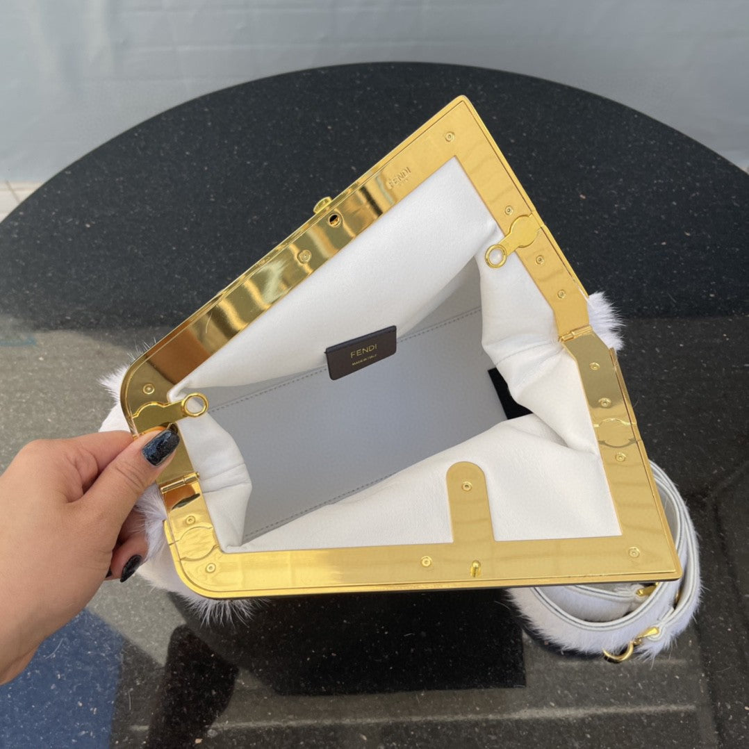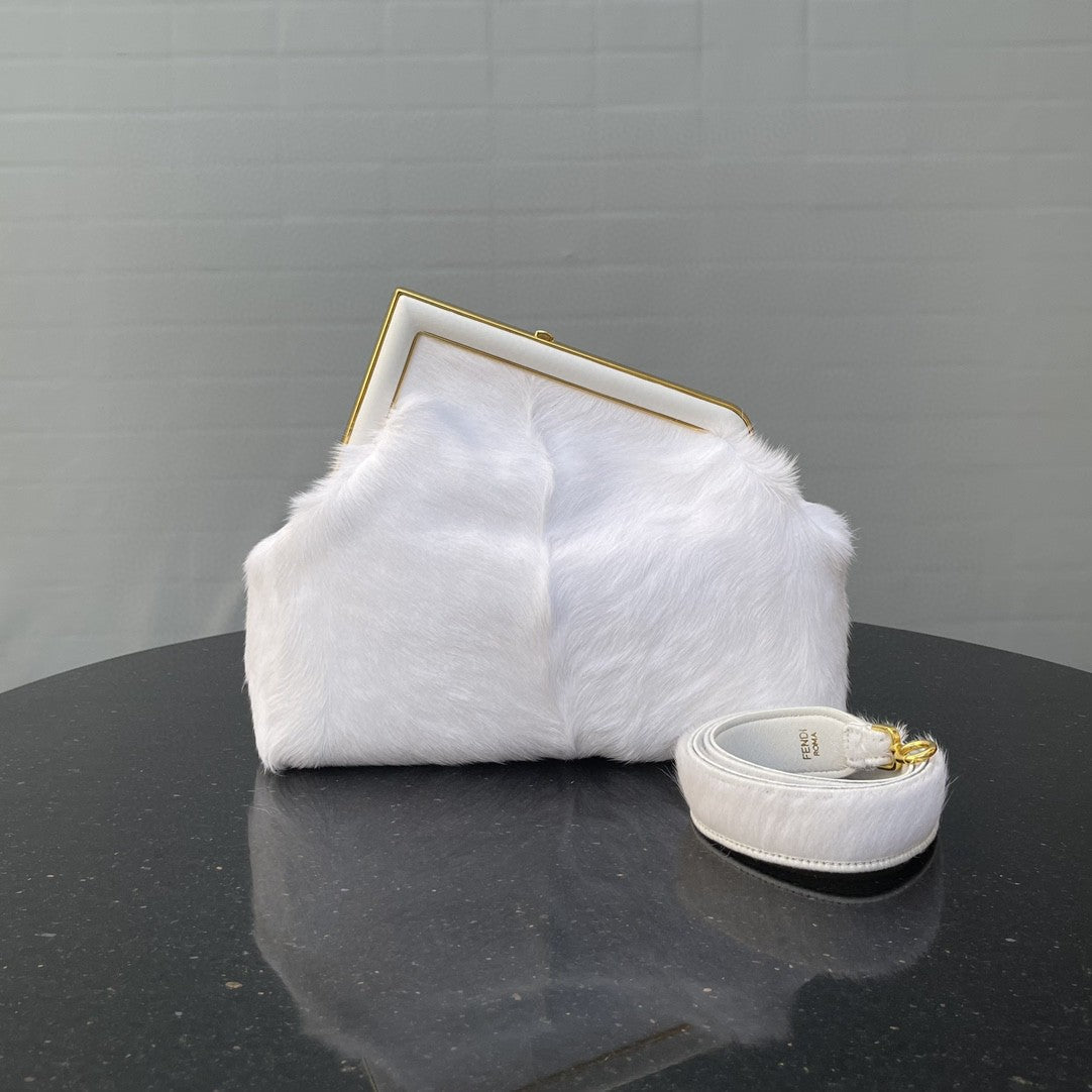 FND First Medium White Fox Fur Bag For Woman 32.5cm/13in
