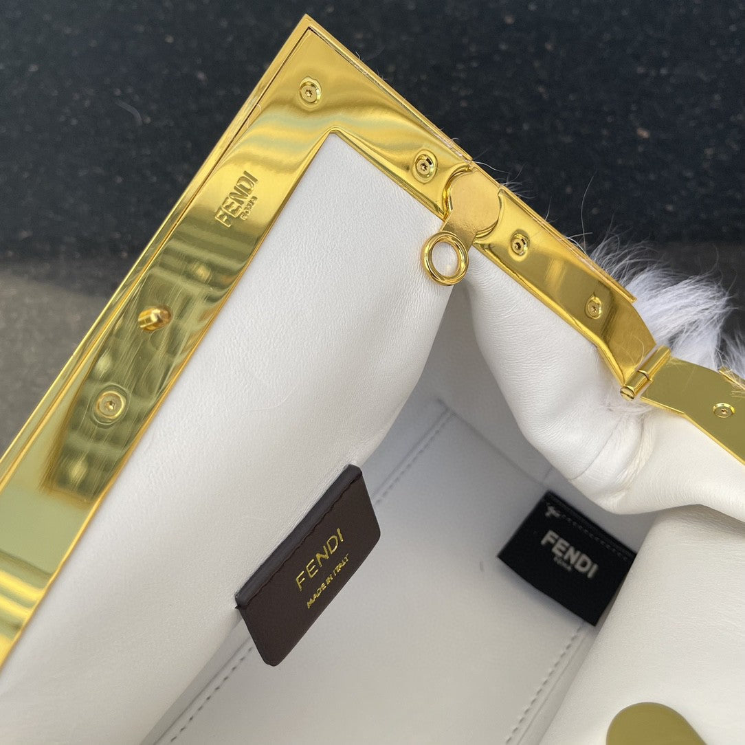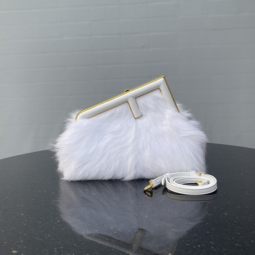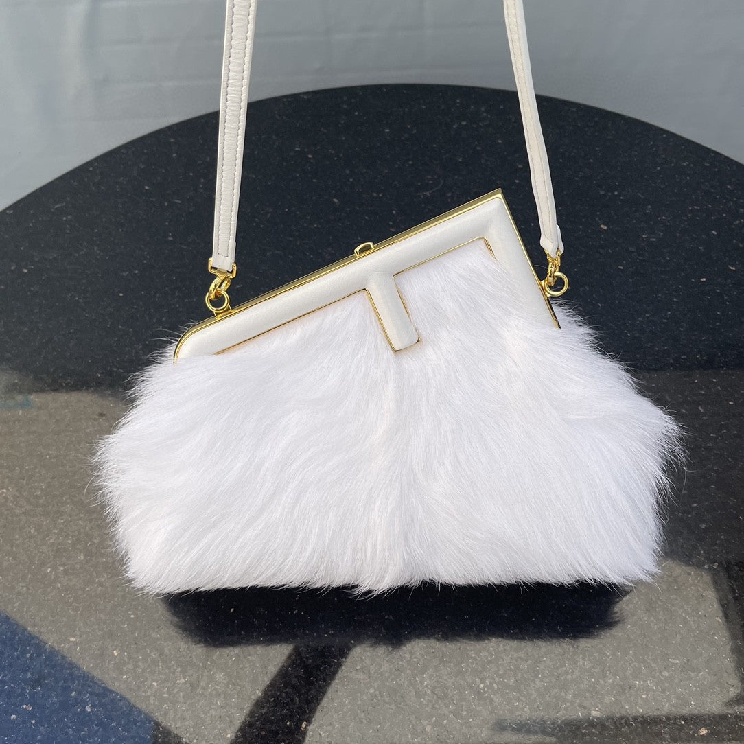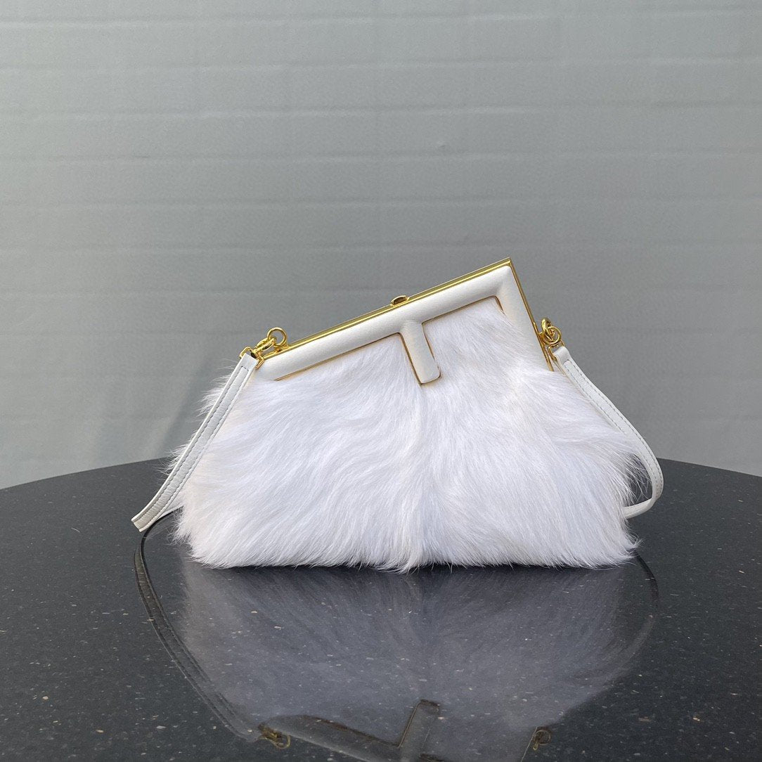 FND First Small White Fox Fur Bag For Woman 26cm/10in