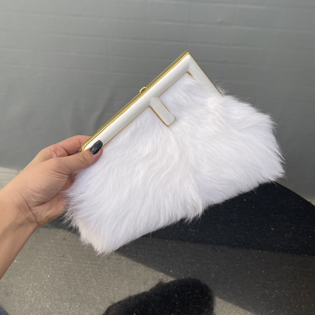 FI First Small White Fox Fur Bag For Woman 26cm/10in