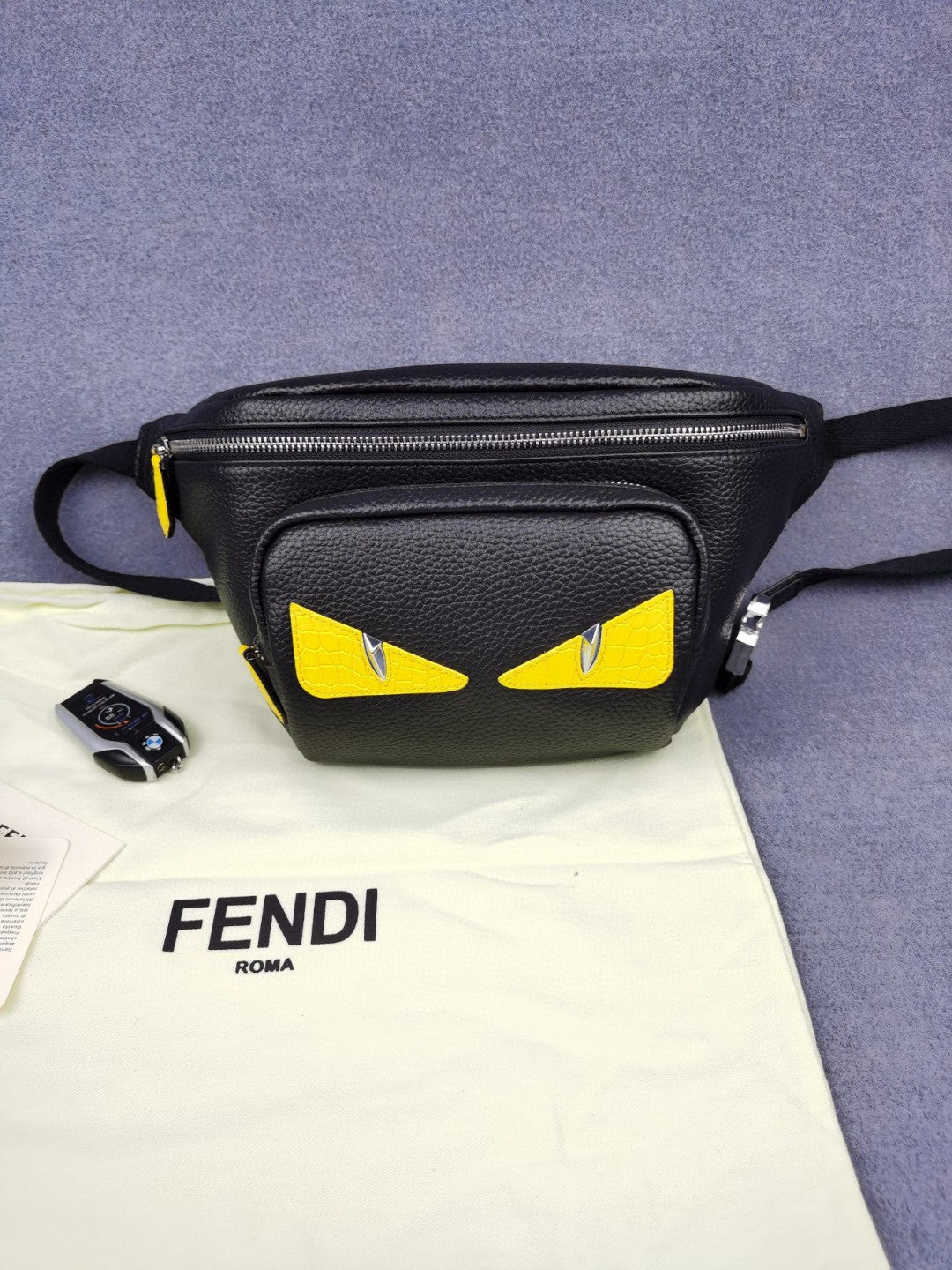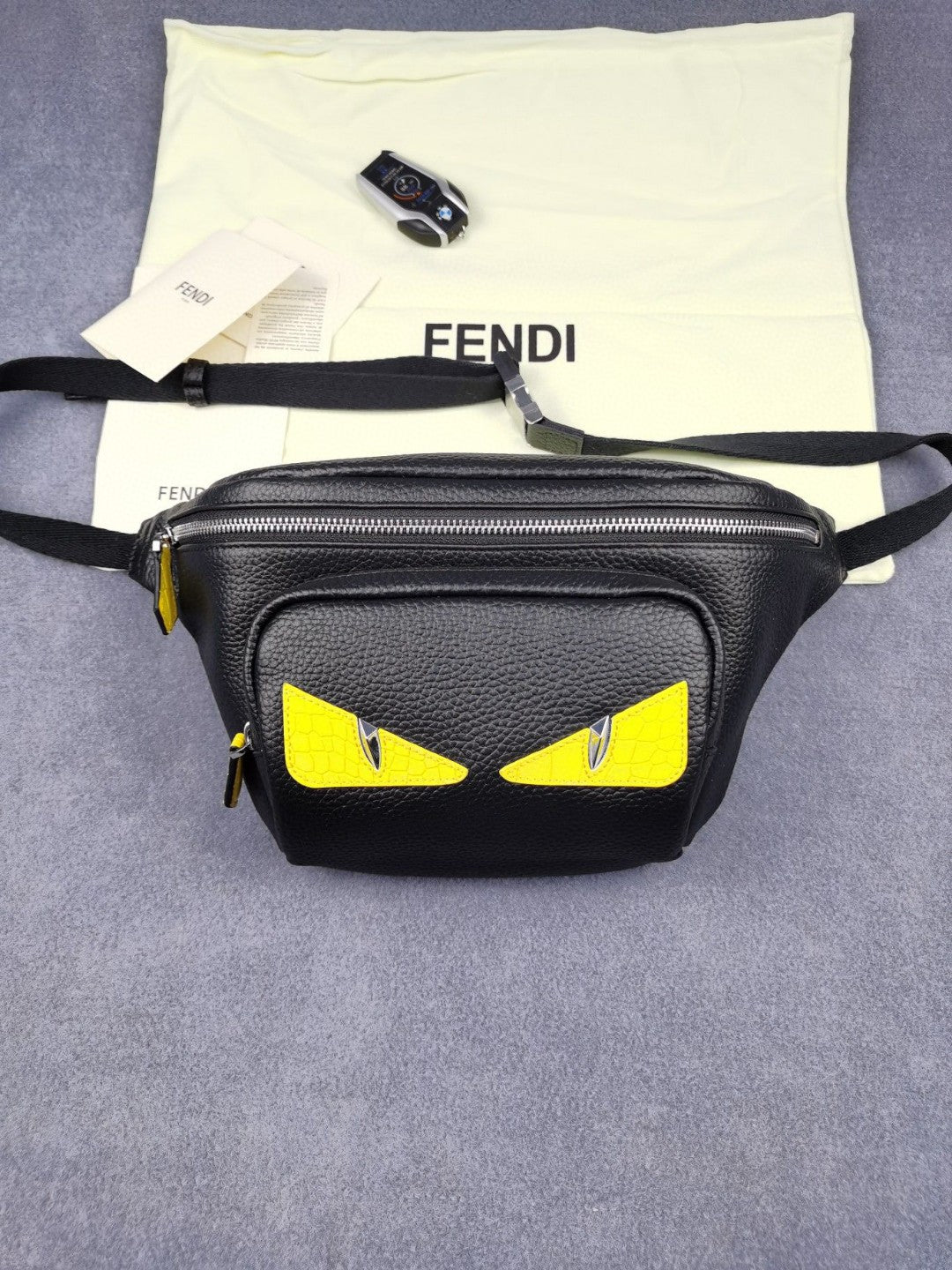 FND Little Monster Belt Bag Black/Yellow For Men, Men’s Bags 7.9in/20cm FF