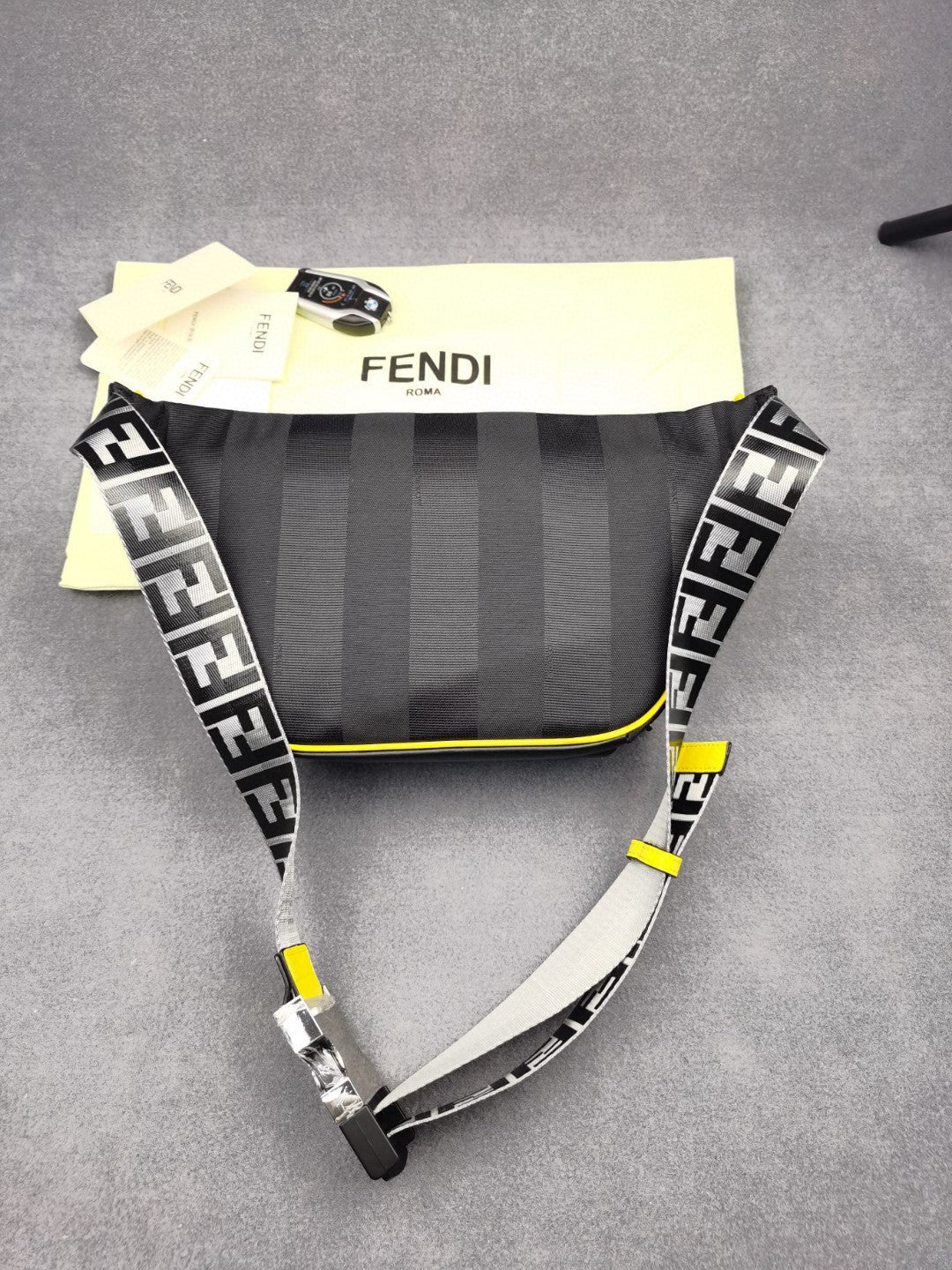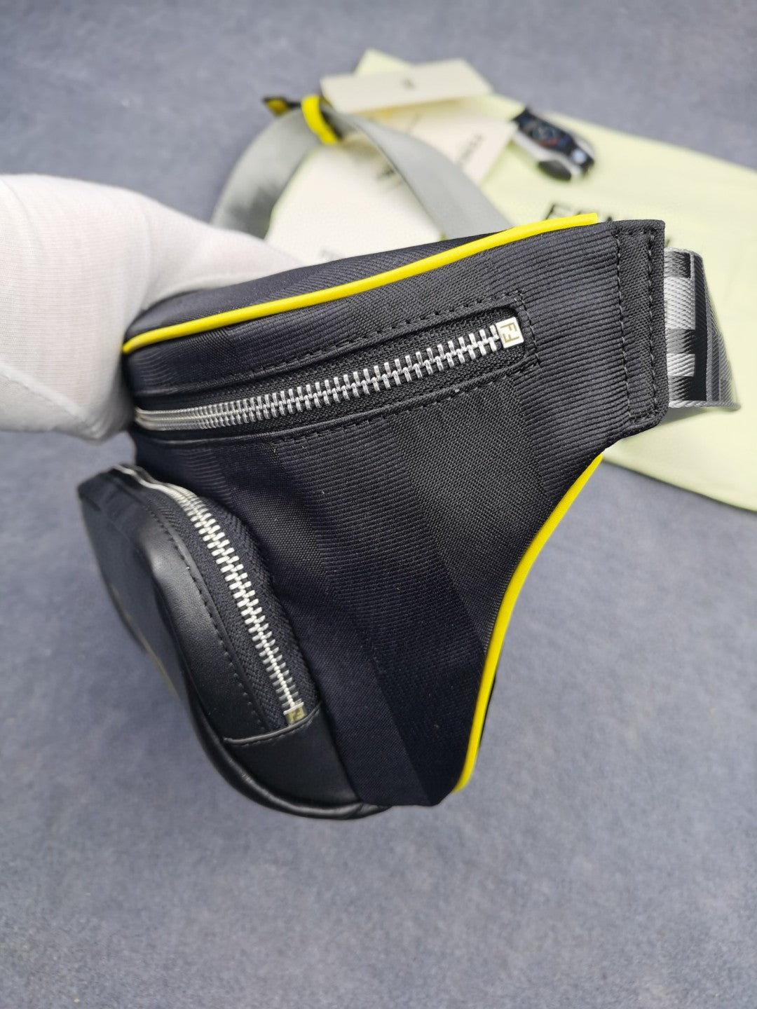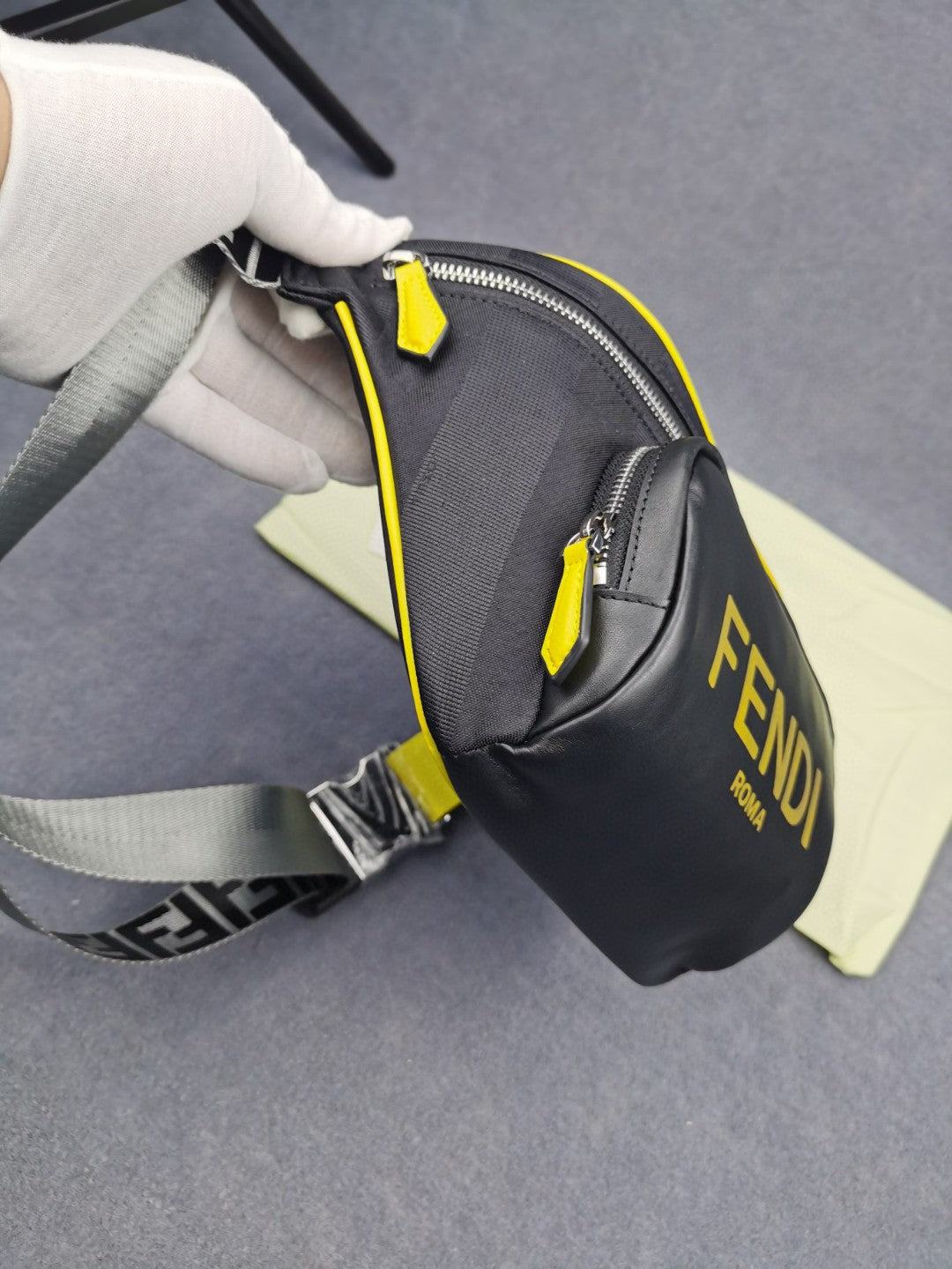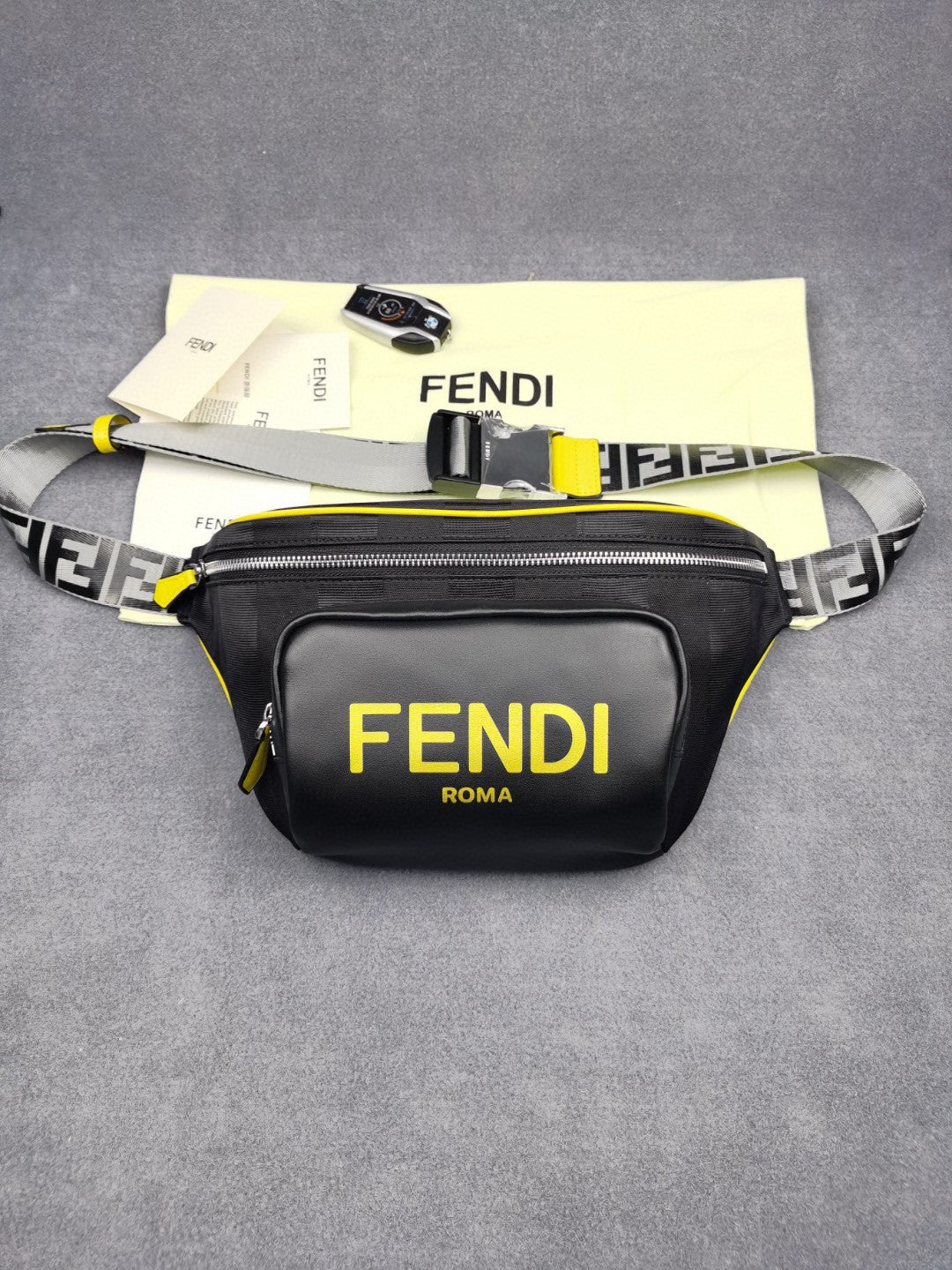 FND Little Monster Belt Bag Black/Yellow/Gray For Men, Men’s Bags 7.9in/20cm FF