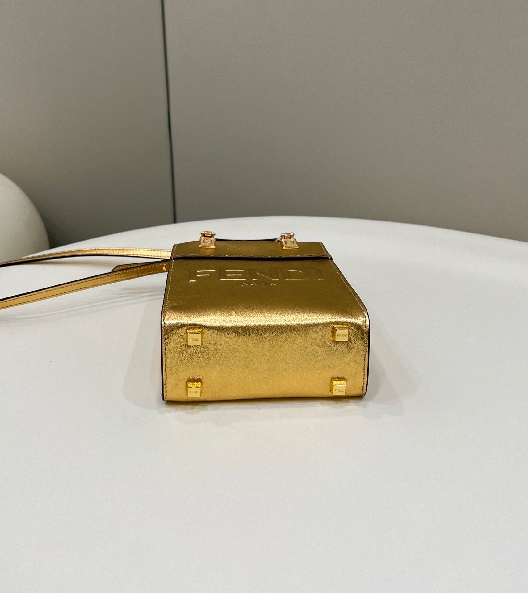 FND Mini Sunshine Shopper Gold For Women, Women’s Handbags, Shoulder And Crossbody Bags 7.1in/18cm FF 8BS051AJH7F1GNN