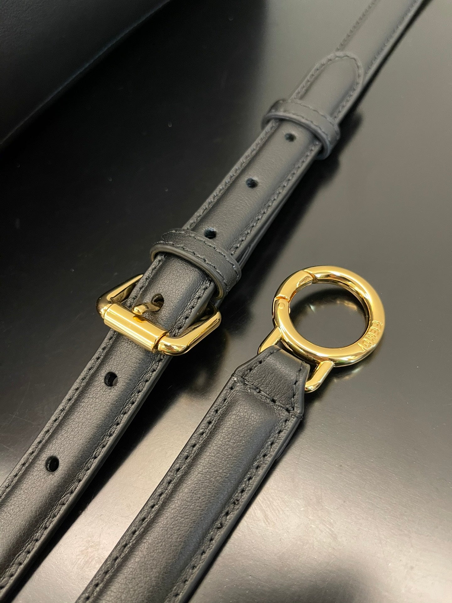 Featuring lined interiors, two compartments separated by a stiff partition, an inner pocket and gold-finish metalware.