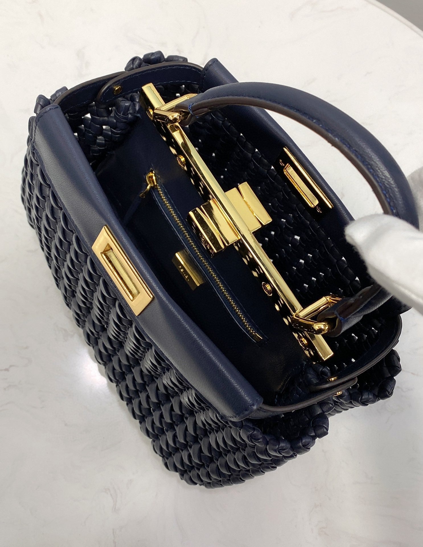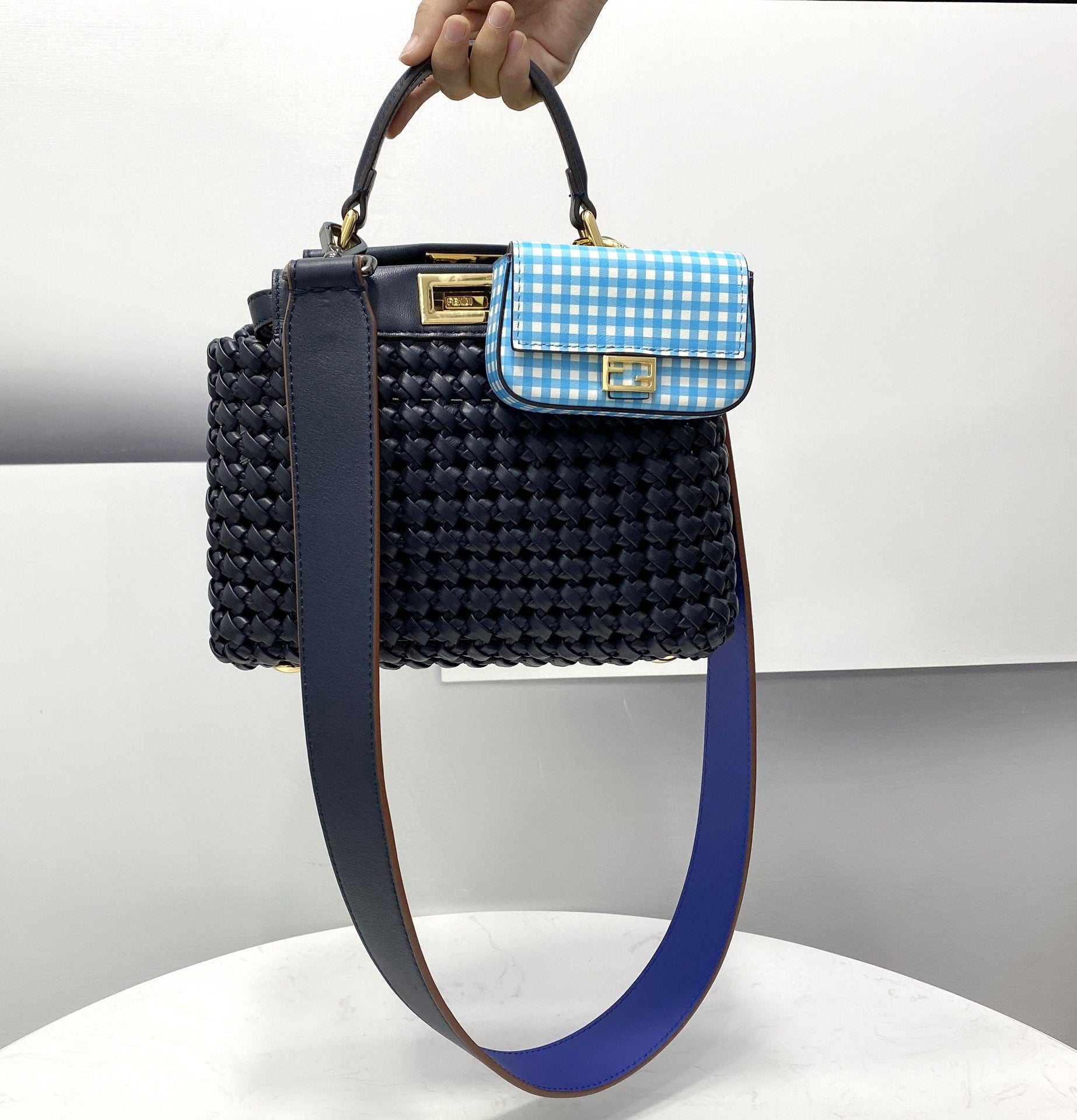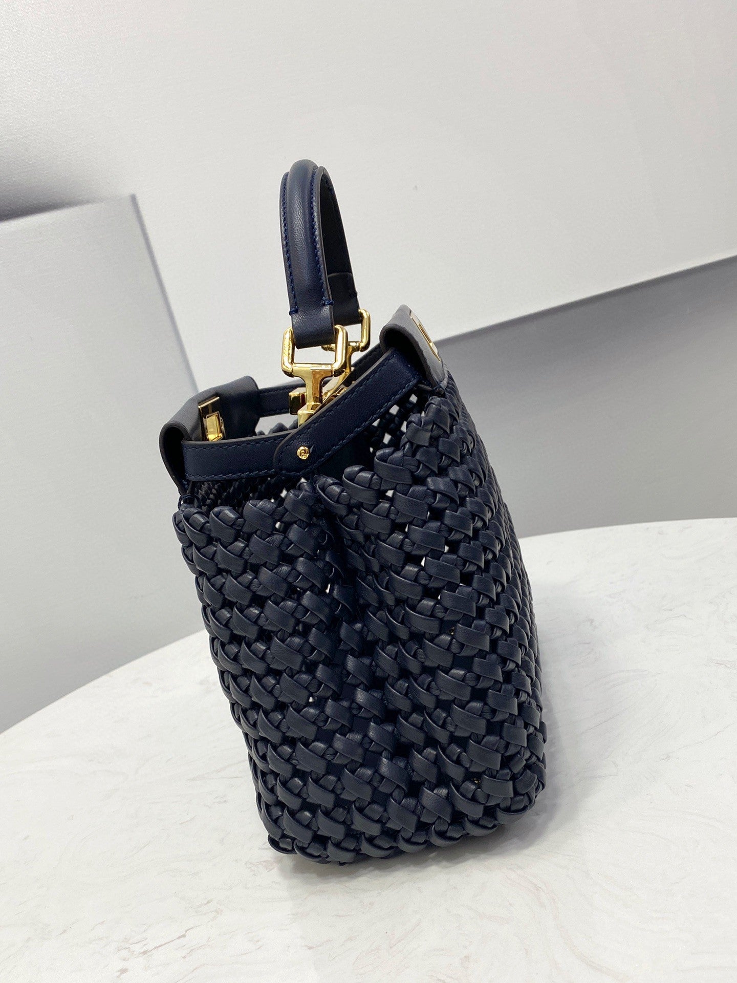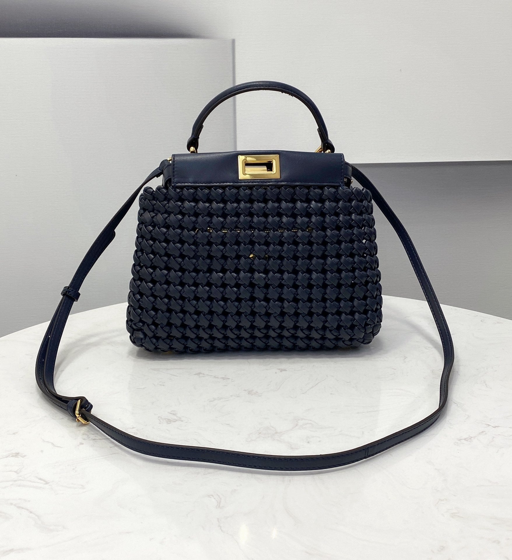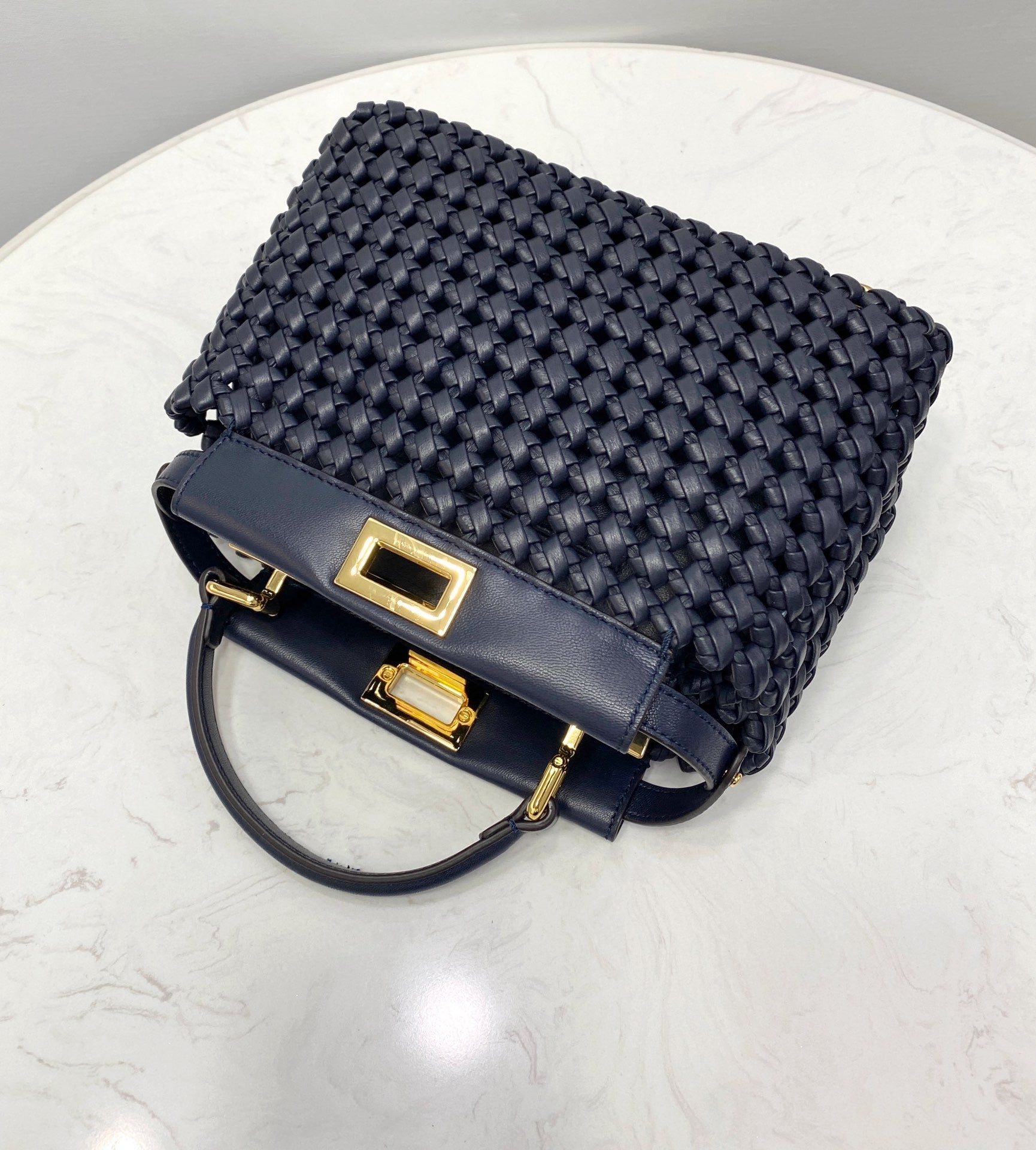 FND Peekaboo Mini Navy Blue Braided Bag For Woman 18cm/7in