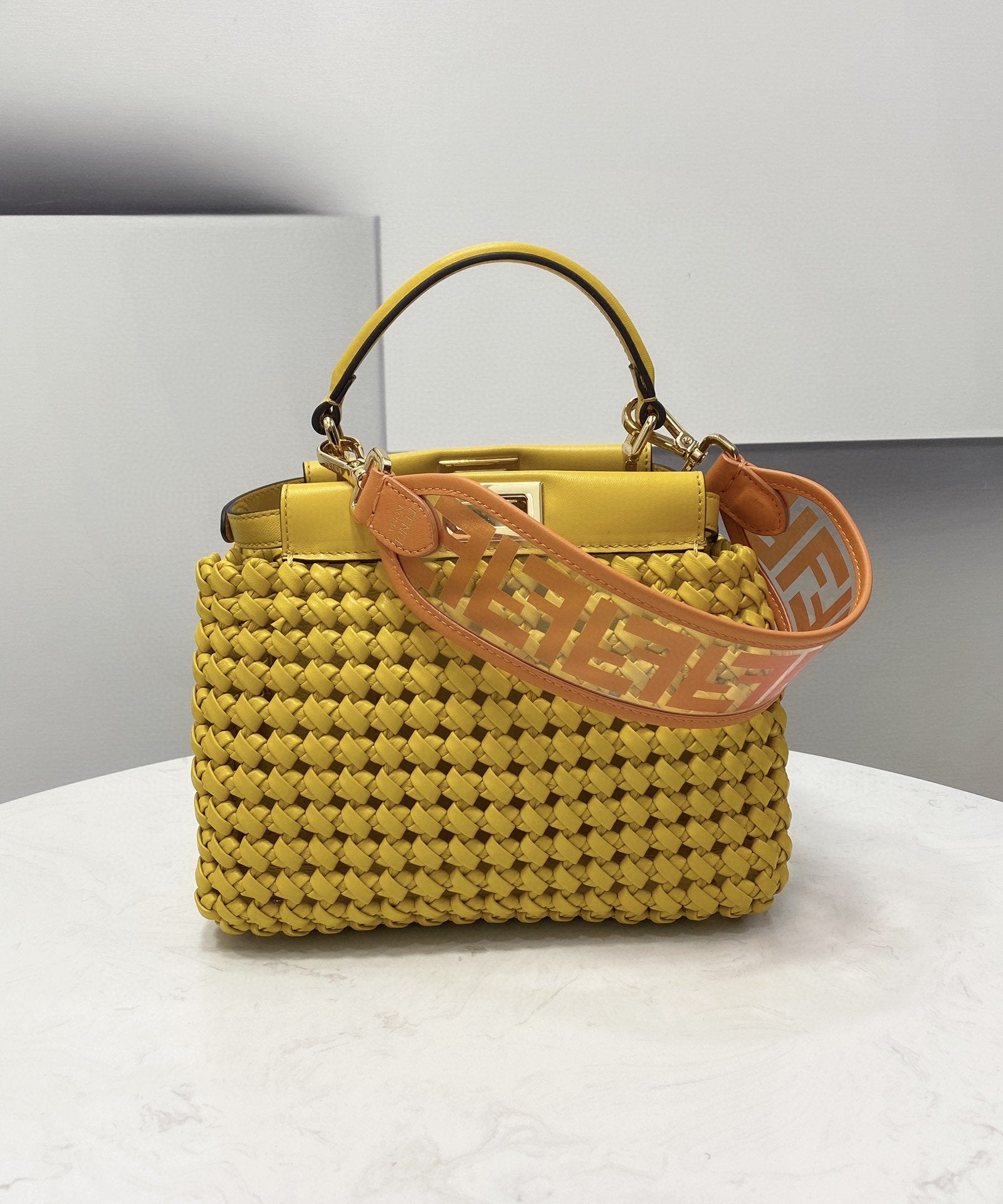 FND Peekaboo Mini Yellow Braided Bag For Woman 18cm/7in