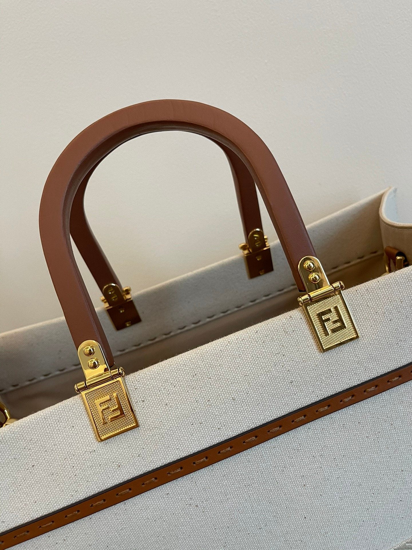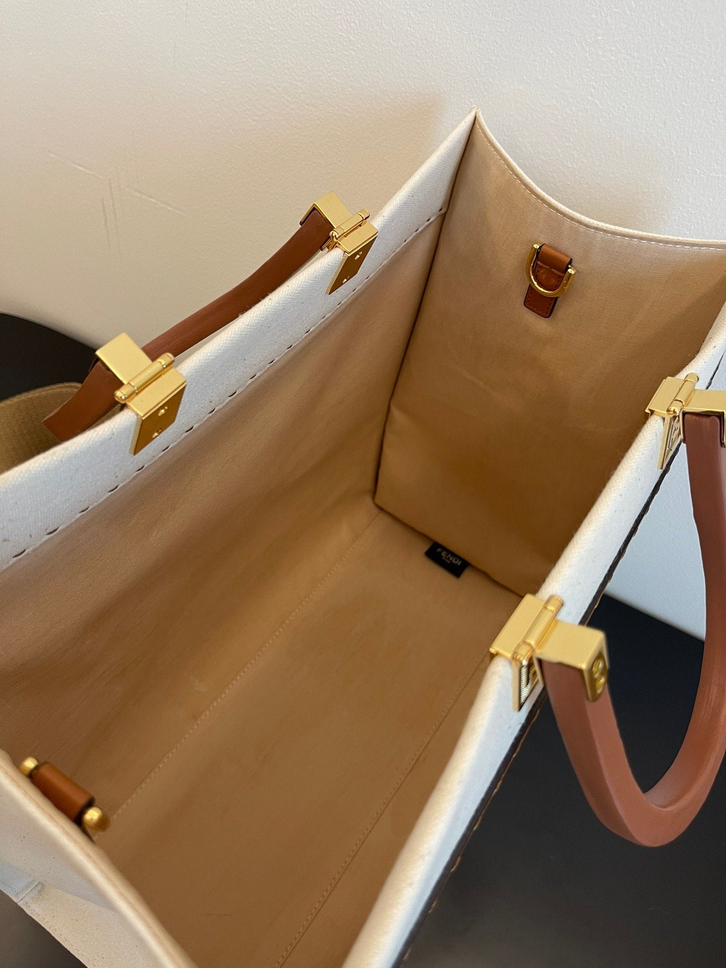 FND Sunshine Medium Tote Bag Light Grey Canvas For Women, Women’s Bags, Shoulder Bags 13.8in/35cm FF 8BH386
