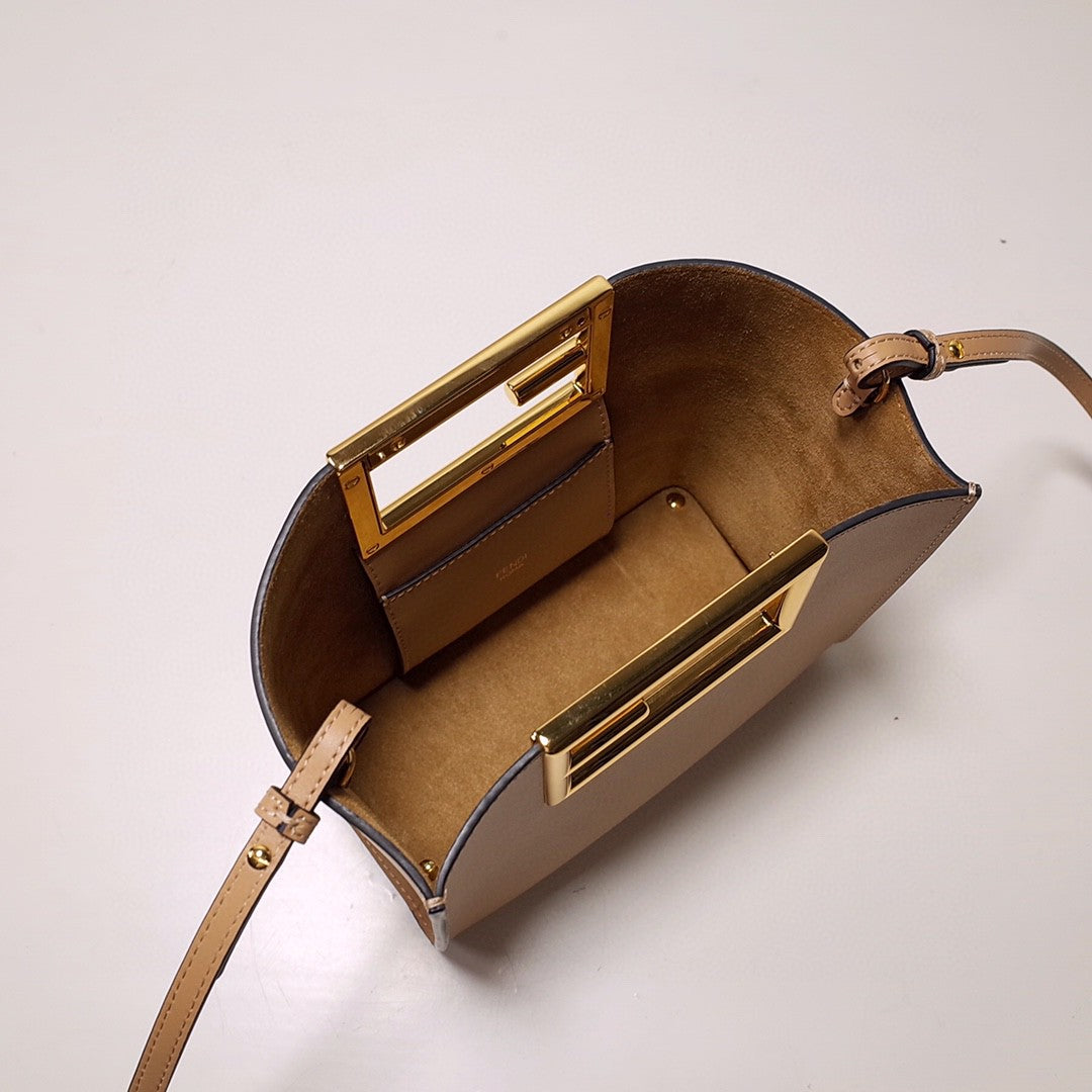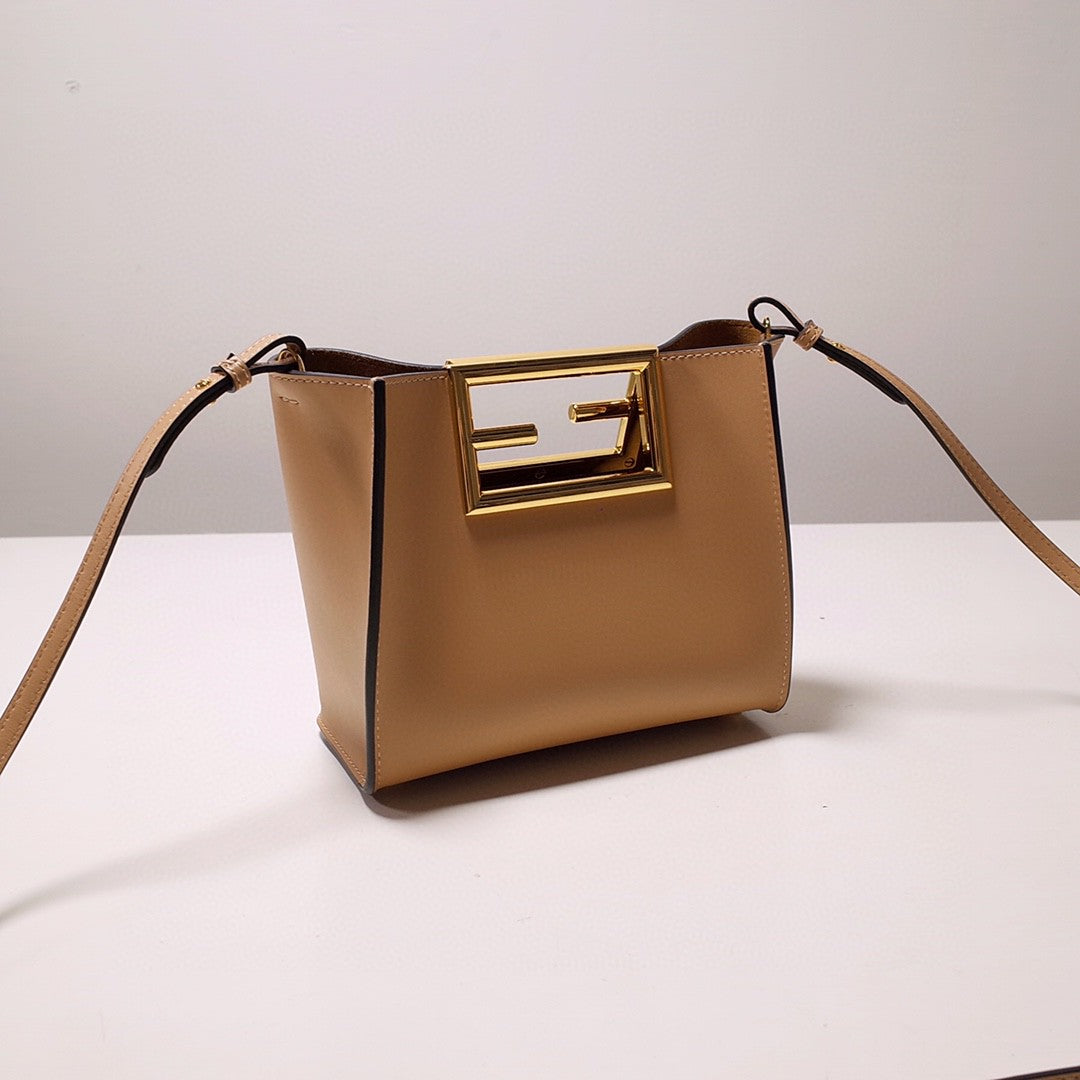 Small FND Way bag made of beige leather with oversize FF logo metal handles.
