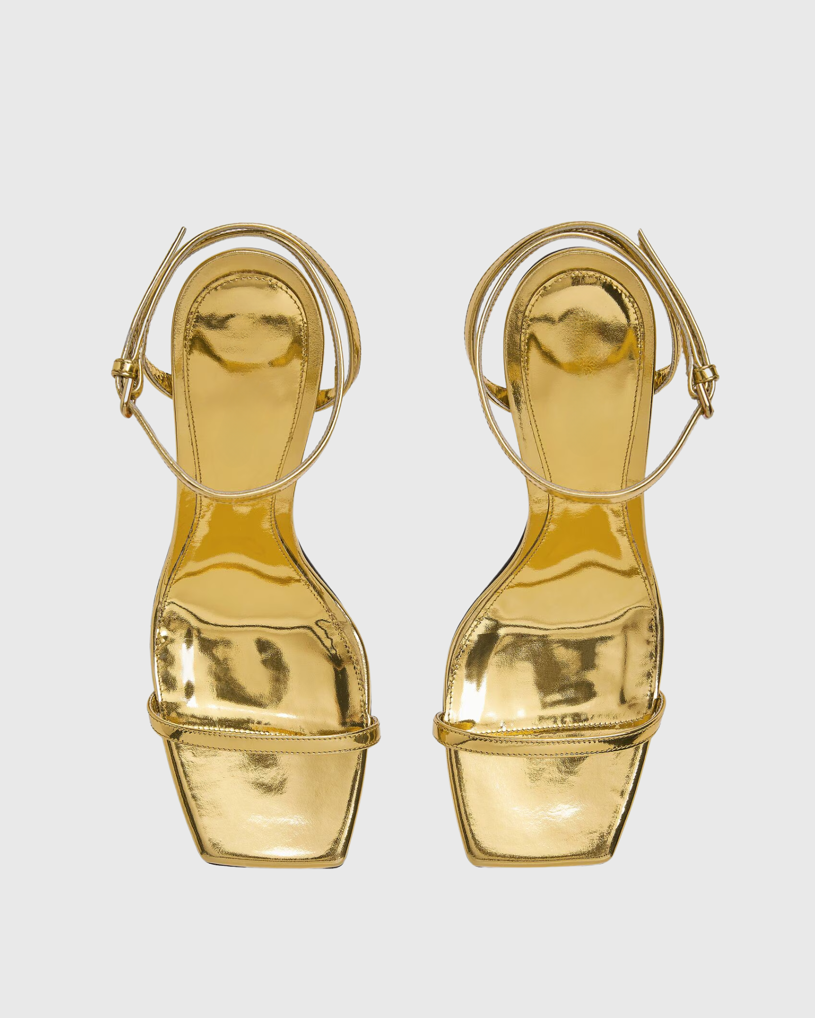 Add a touch of glamour to your outfit with Fiamma Metallic Metal Knot Sandals In Gold. The intricate knot design and metallic finish will make you stand out in any crowd. Step into comfort and style with these sandals that will elevate your look and leave a lasting impression.