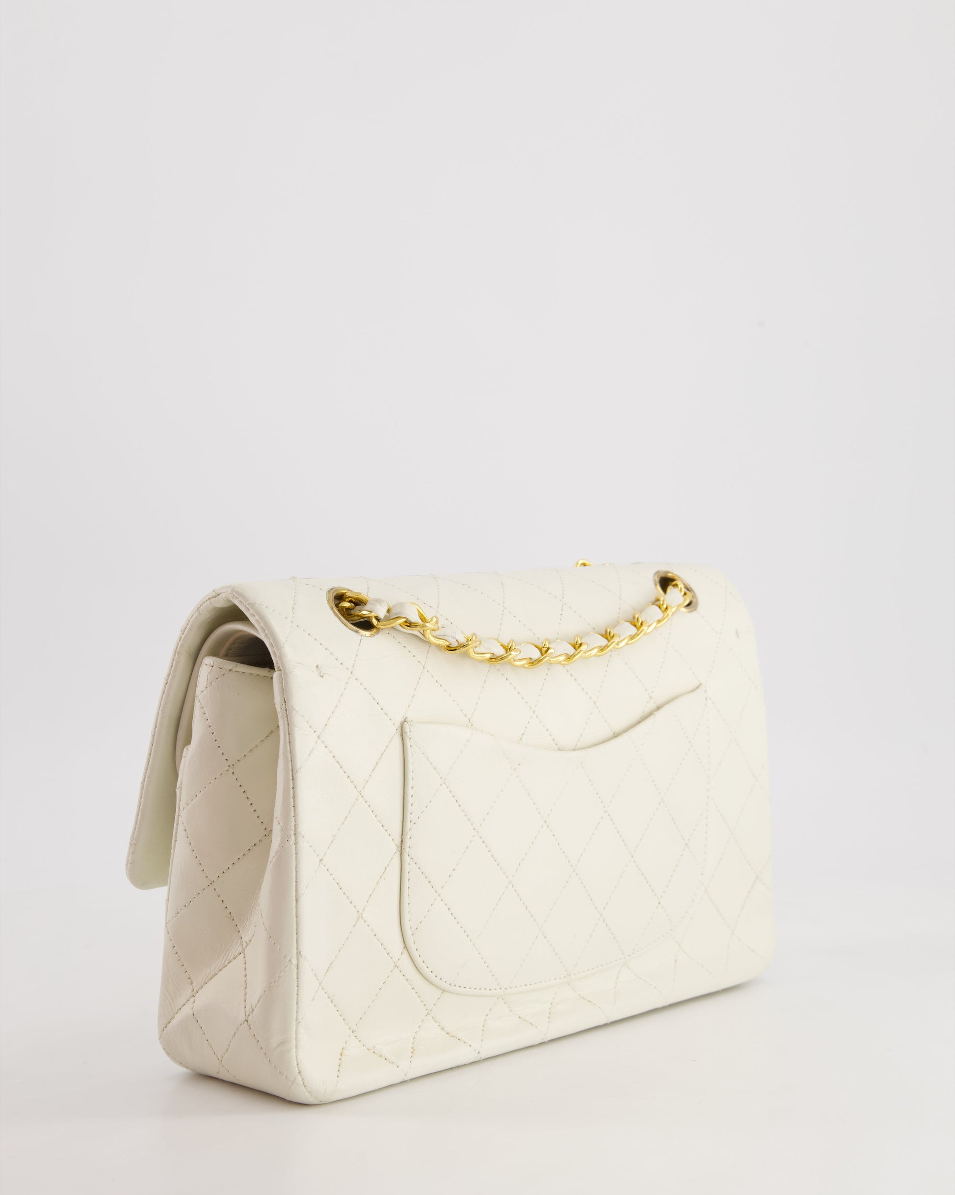 *FIRE PRICE* Chanel Vintage White Medium Classic Double Flap Bag in Lambskin Leather with 24K Gold Hardware
