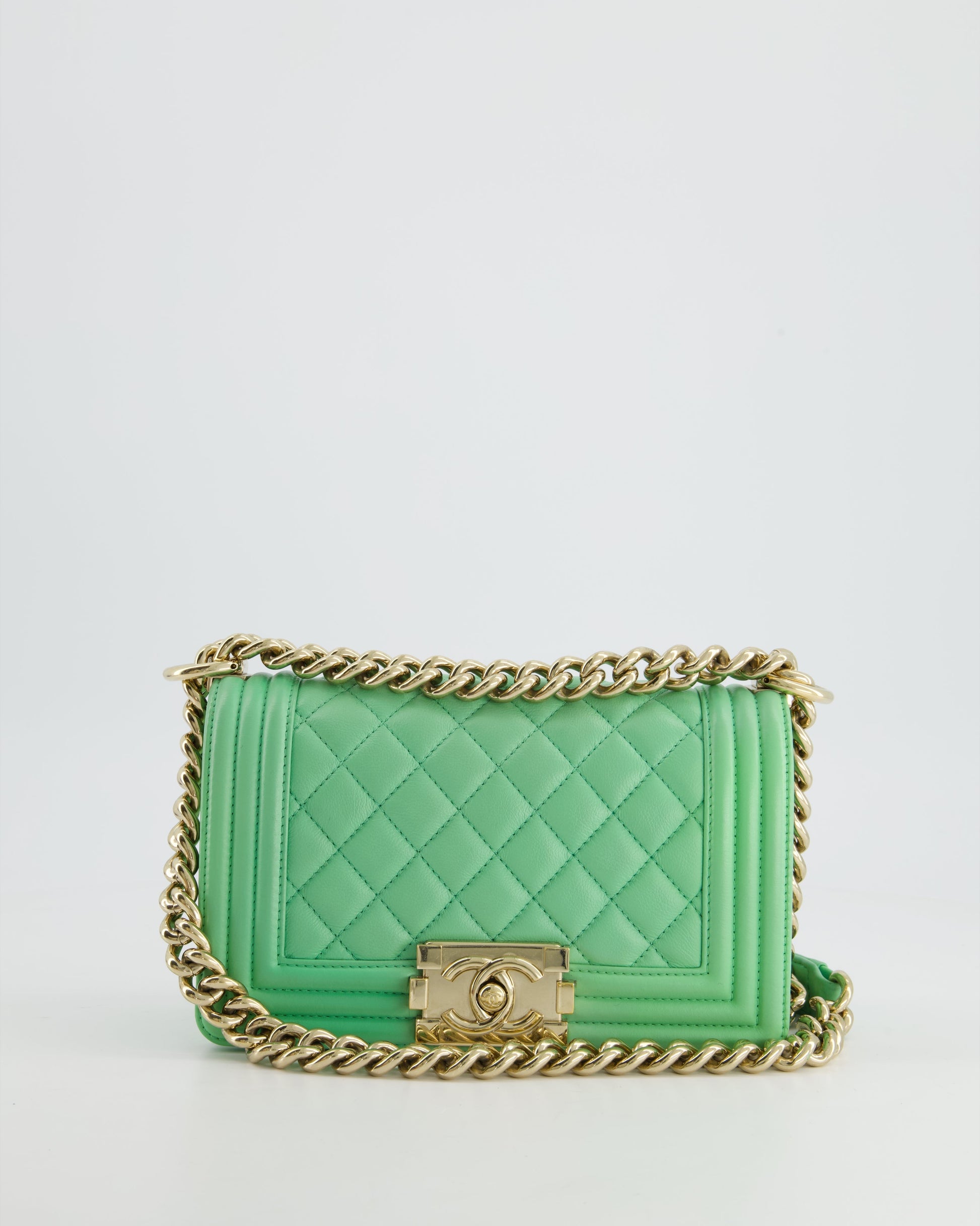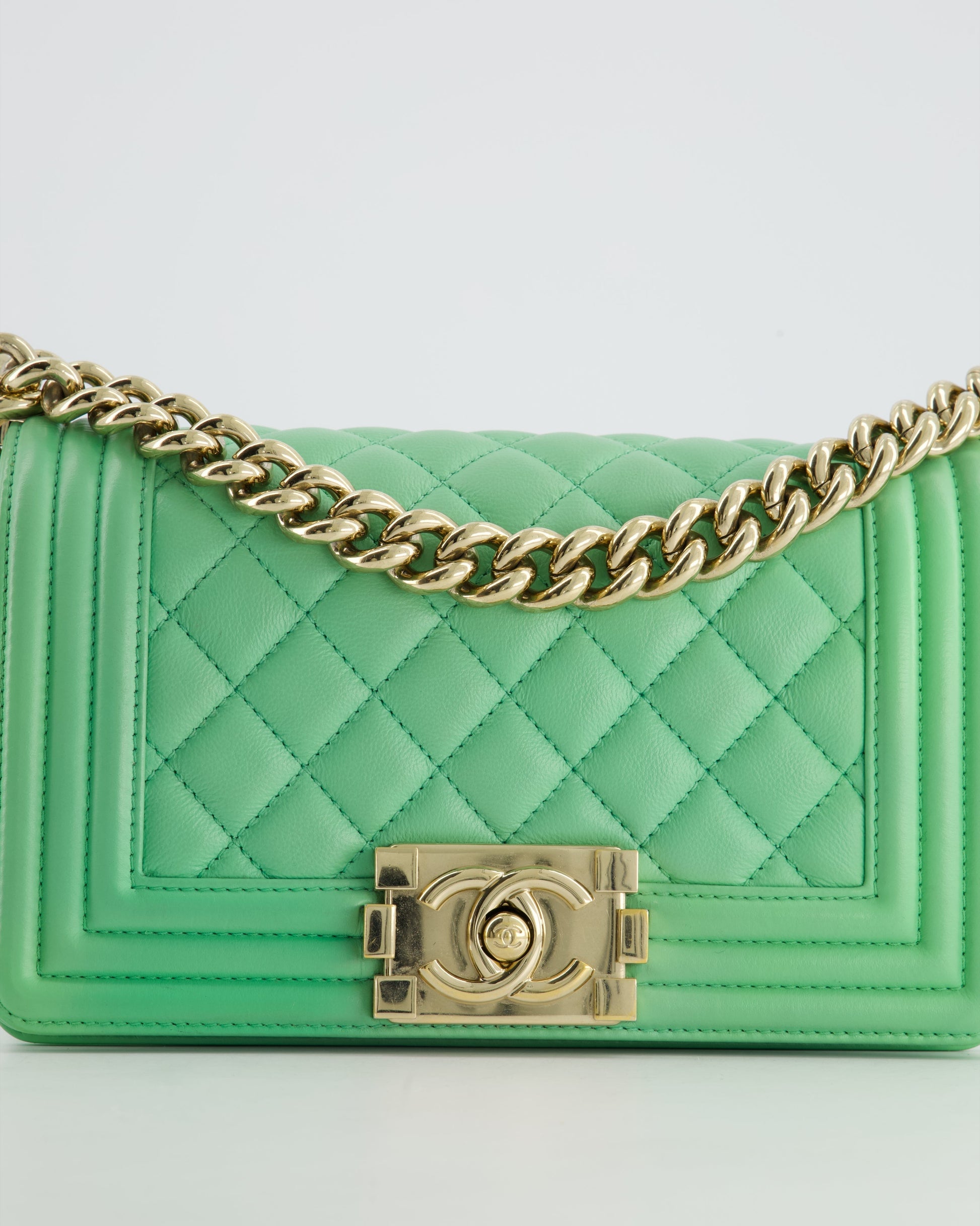*HOT* Chanel Mint Green Small Boy Bag in Shiny Calfskin Leather with Champagne Gold Hardware
