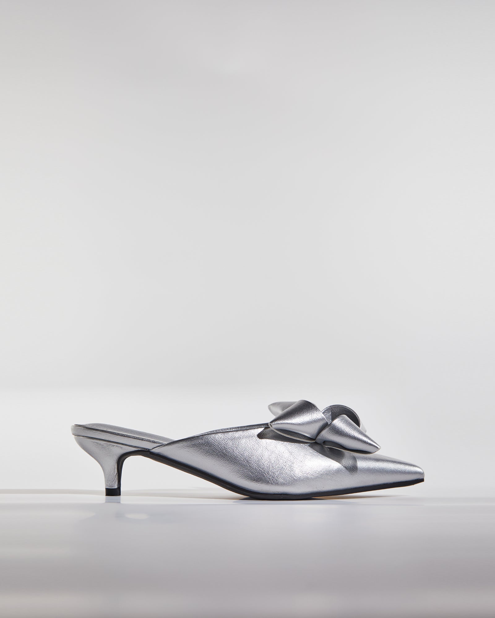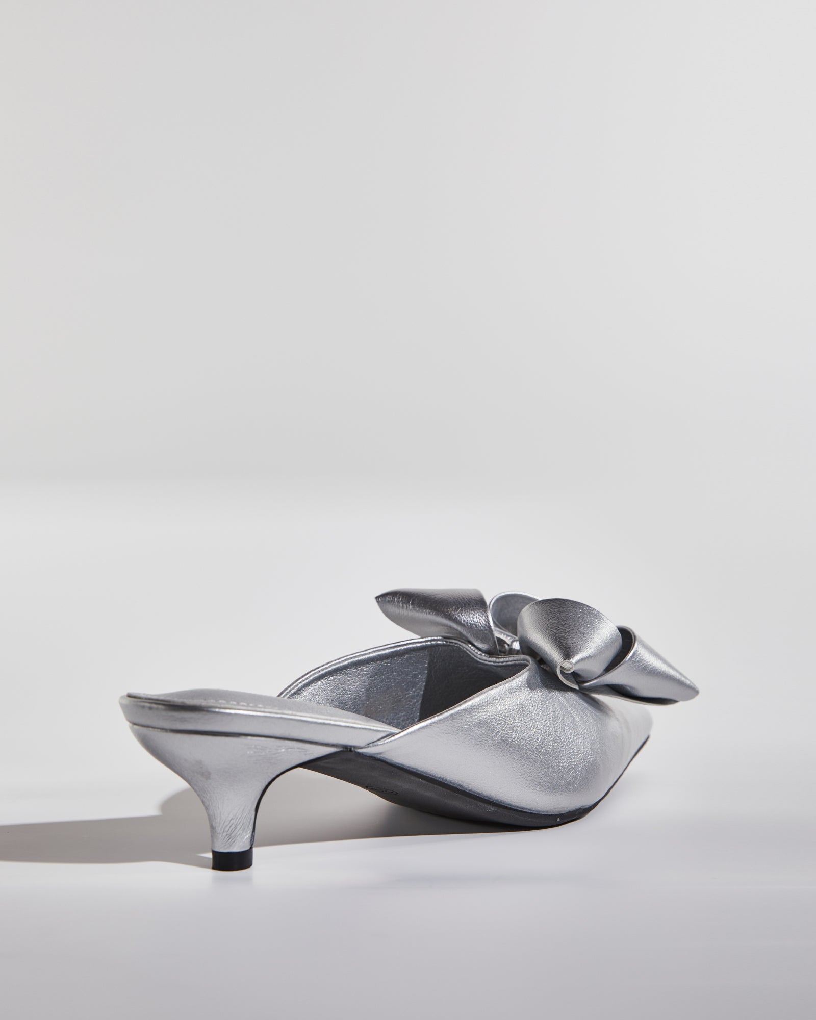 Indulge in effortless glam with these Flo Flower Leather Mules In Silver. Crafted with silver leather and adorned with delicate flowers, these mules add a touch of femininity to any outfit. With a comfortable slip-on design and sturdy heel, these mules are both stylish and practical. Elevate your style and stand out from the crowd with Flo Flower Leather Mules.