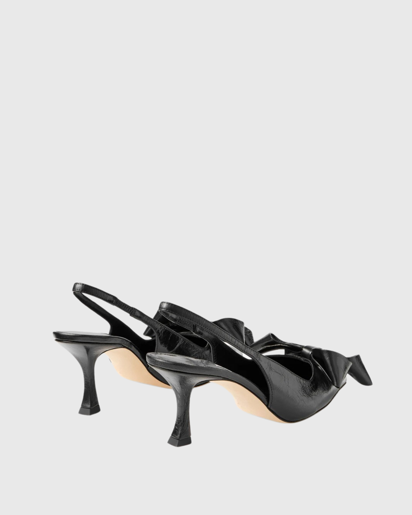 Step into elegance with the Flo Flower Slingback Pumps in Black. These chic pumps combine timeless style with a comfortable slingback design, perfect for all-day wear. The sleek black finish effortlessly complements any outfit, making them ideal for both professional settings and special occasions. Elevate your wardrobe with a pair that offers sophistication and versatility in every step.