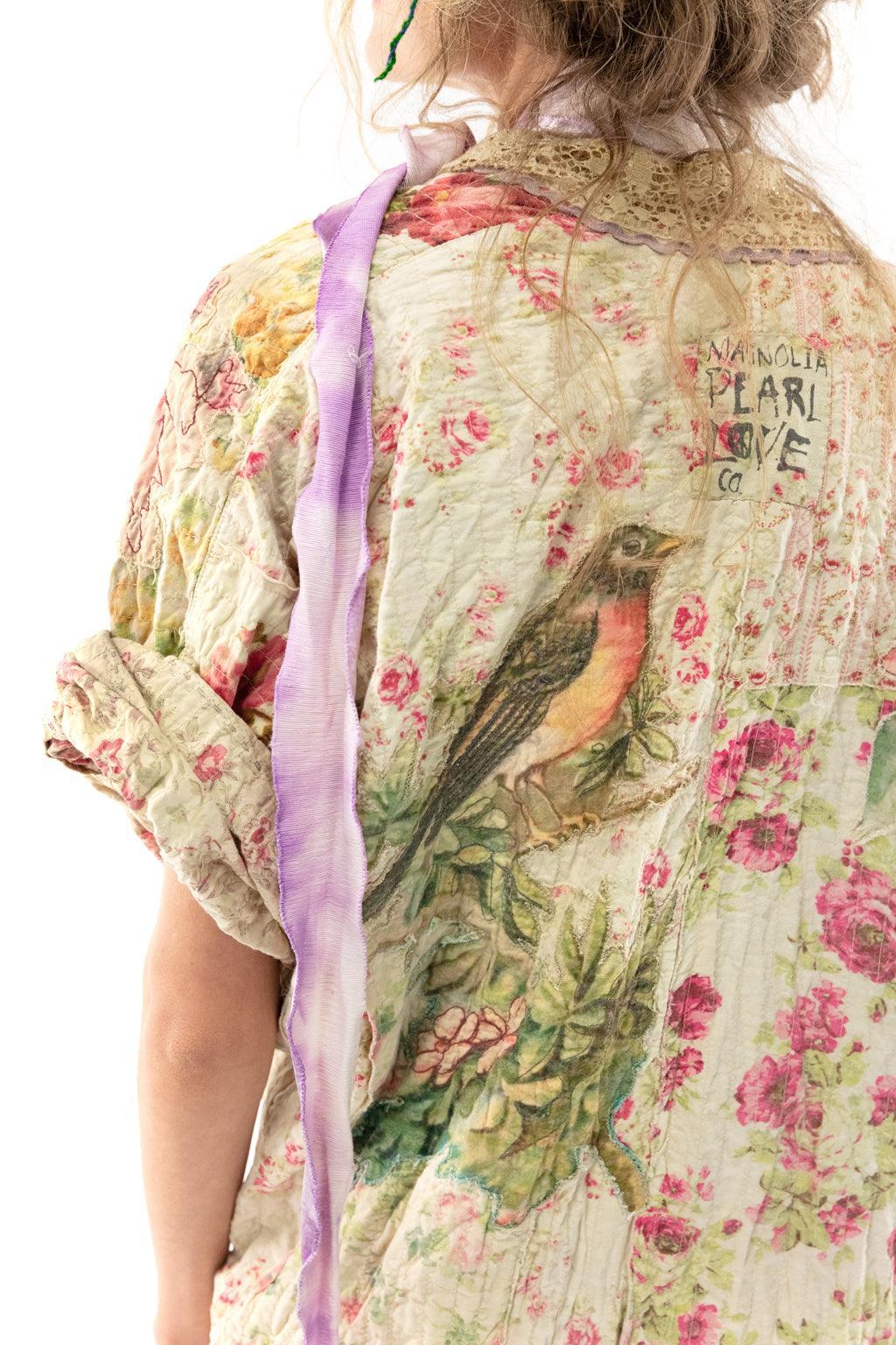 With a natural cheer, our Floral Patchwork Vijii Kimono heralds the absolute, resolute joy echoed in bird song and bloom - the truth arrived at through trial, the greatest gift given.