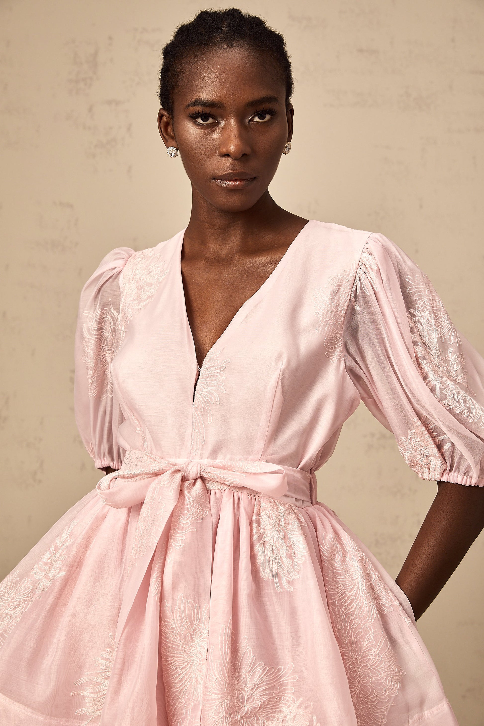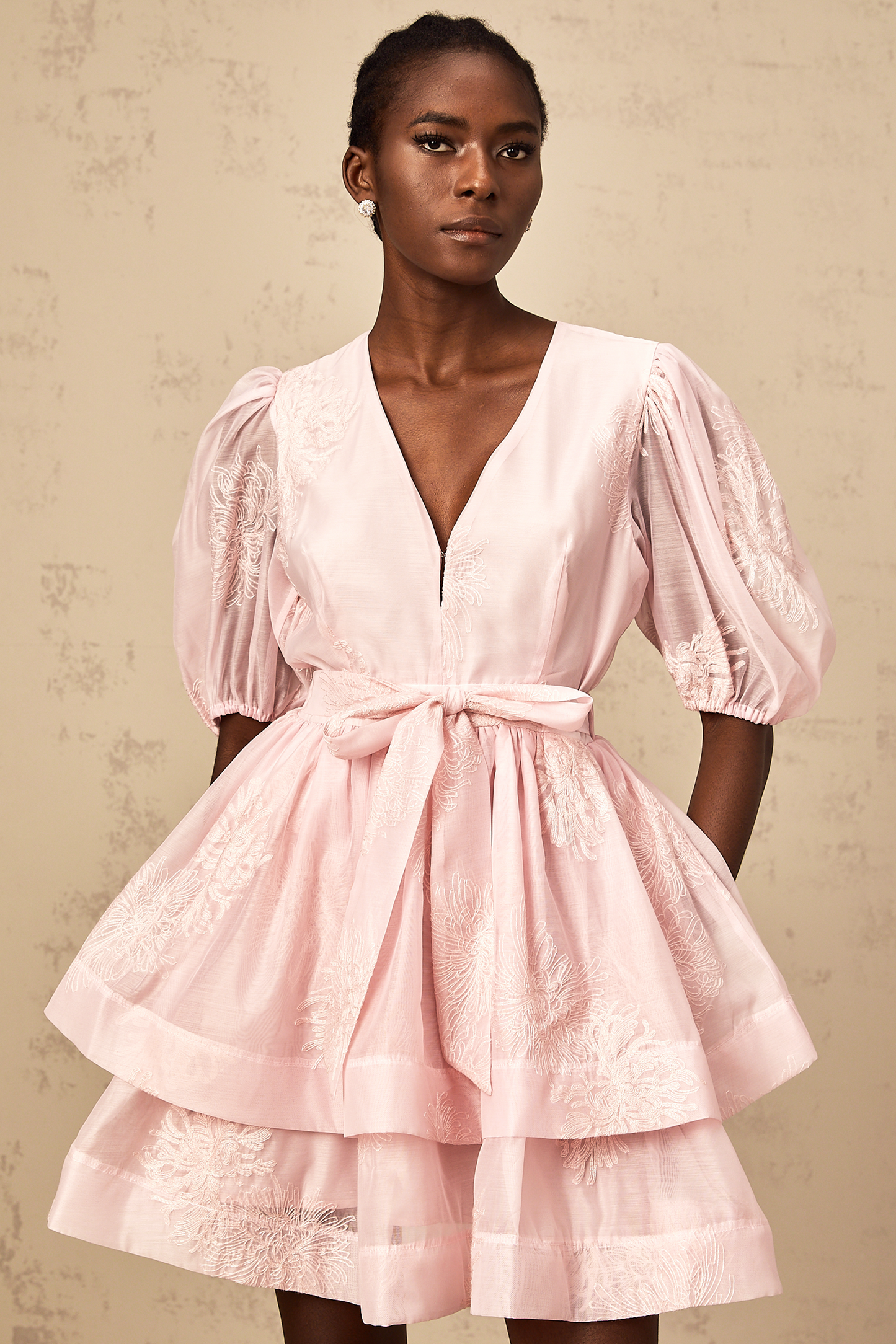 Florence pink floral-embroidered layered mini dress