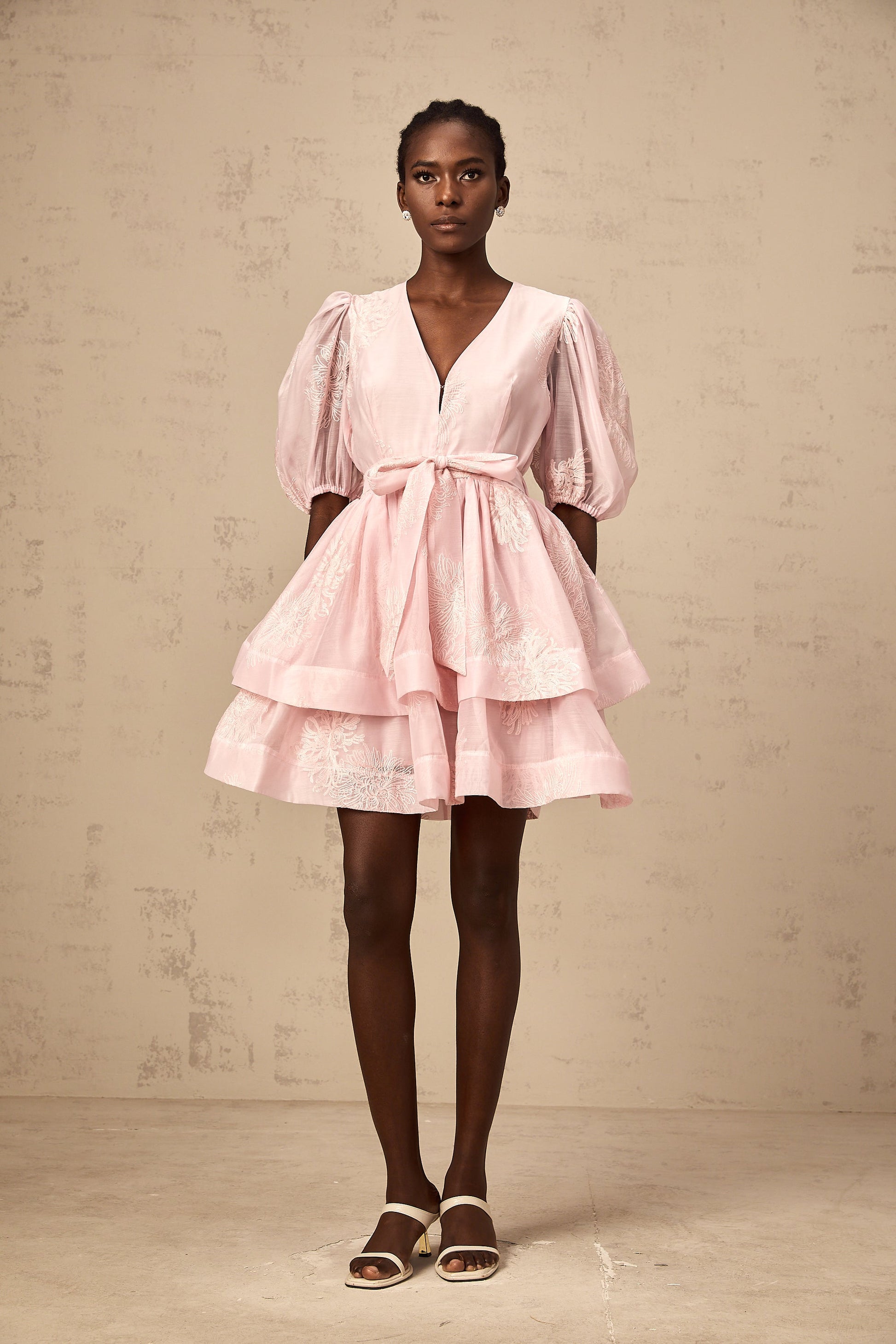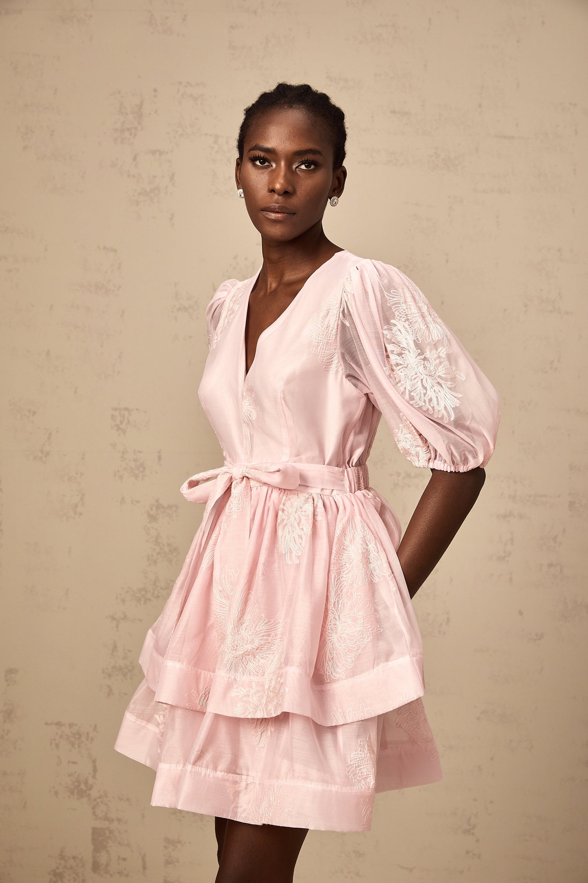 Florence pink floral-embroidered layered mini dress