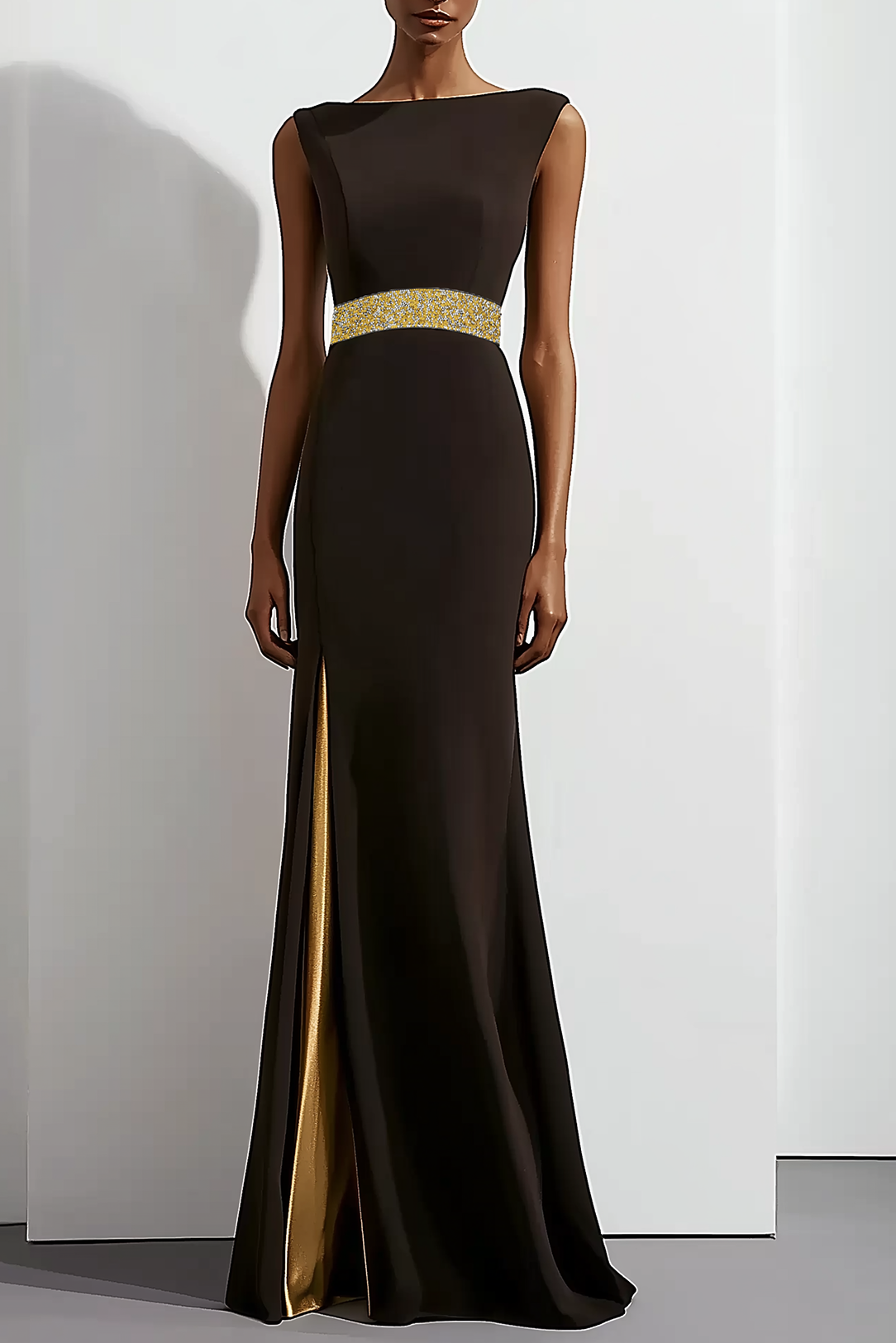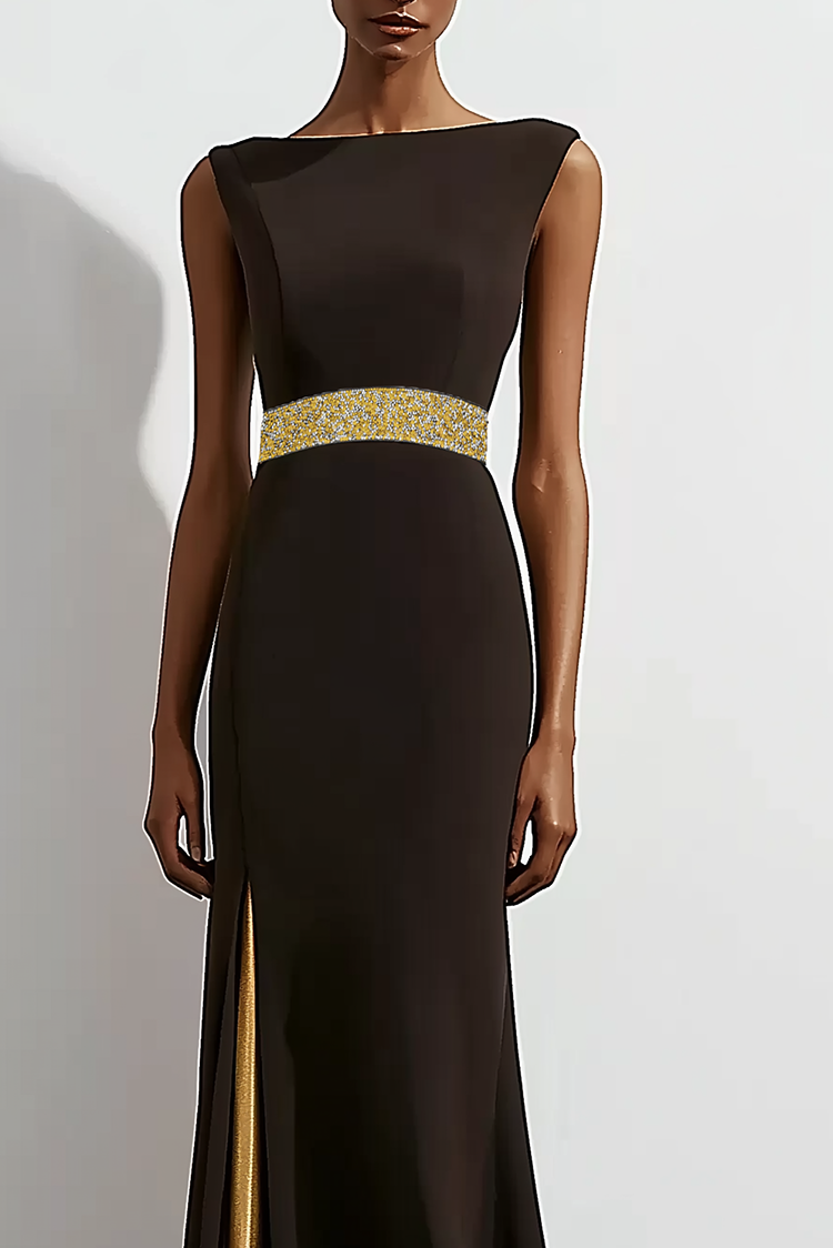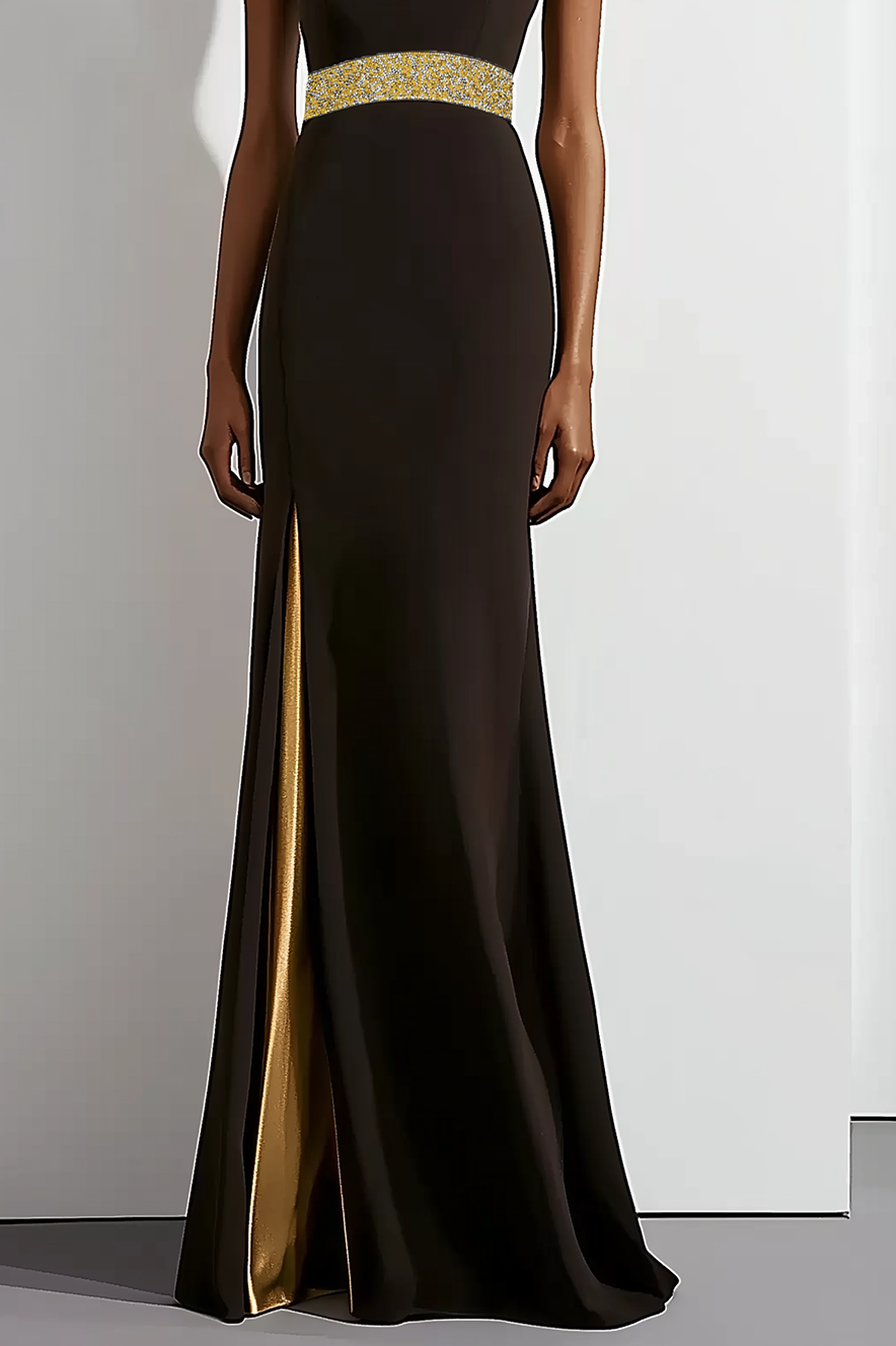 Formal Evening Dress Black Sleeveless Round Neck Floor-Length Dress