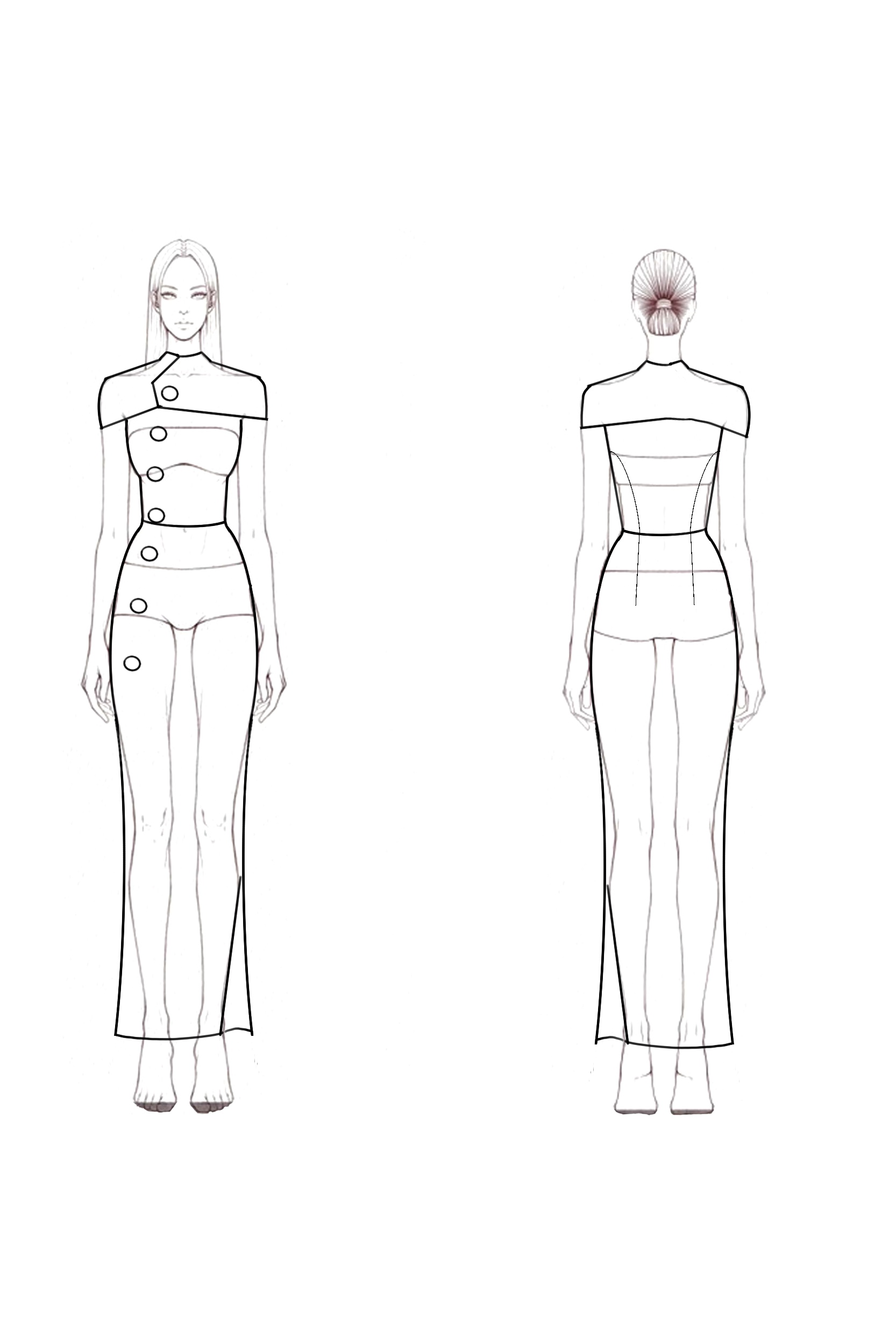 Exude power and poise in this black maxi gown. With a stand collar, front button detail, and a refined slit, this slim-fit design is tailored for commanding attention at formal evening events.