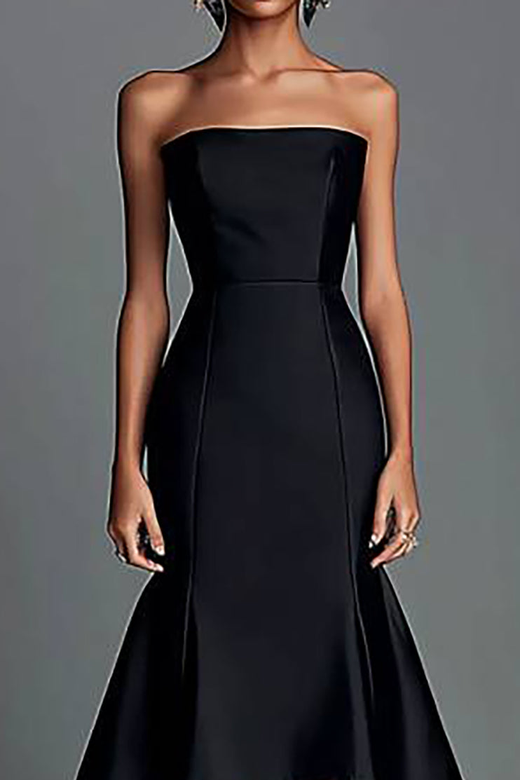 Formal Evening Dress Black Strapless Floor-Length Gown
