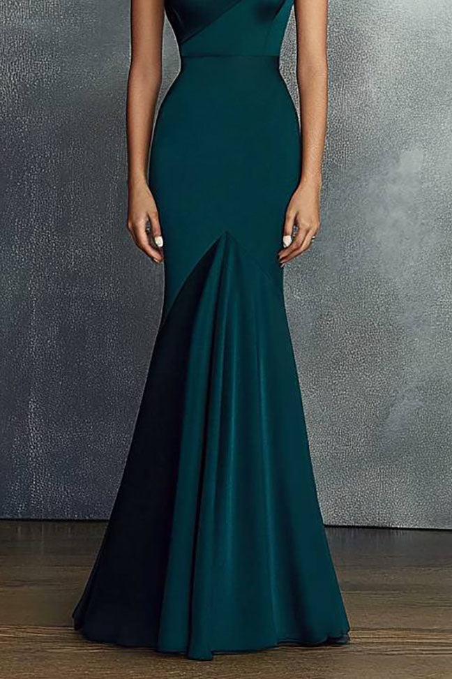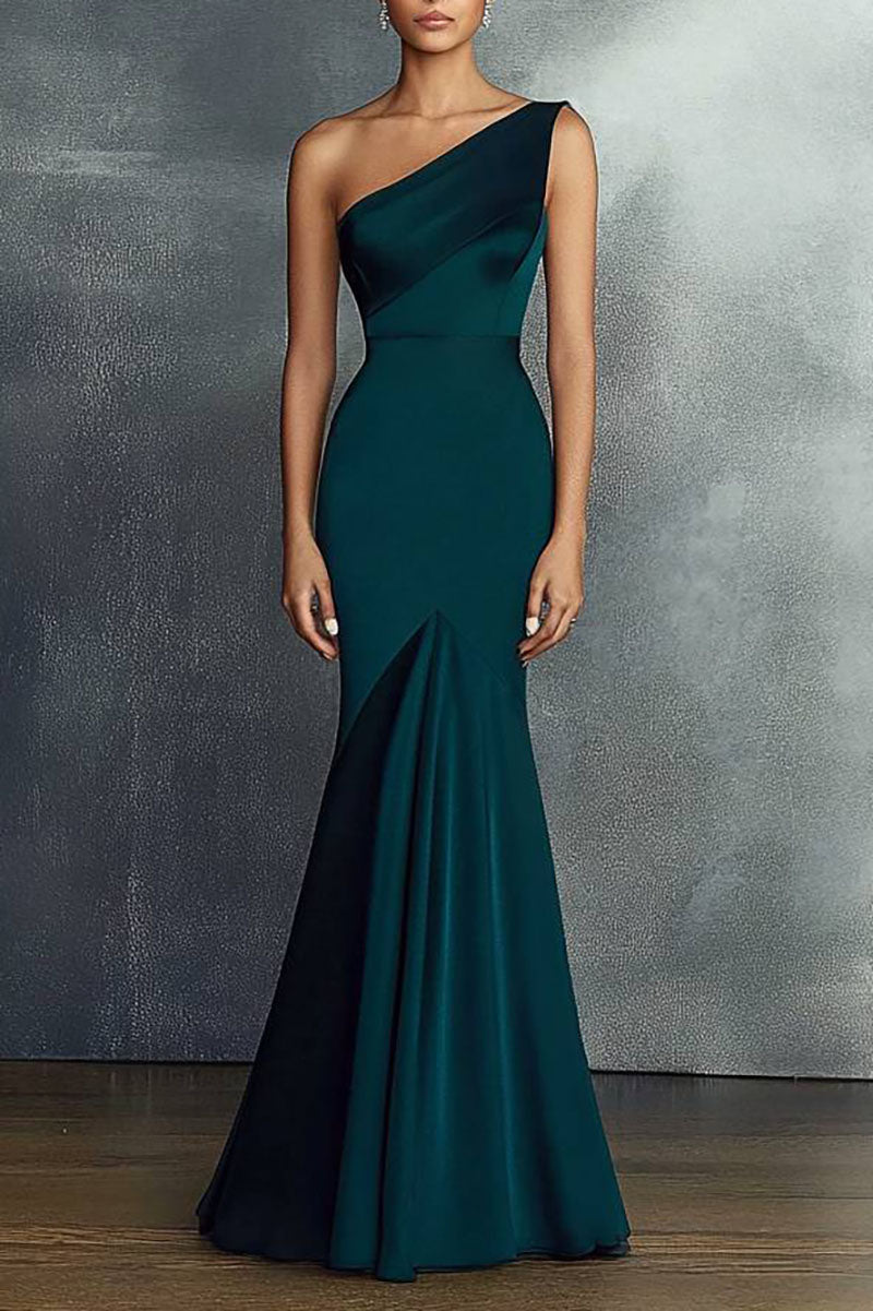 Formal Evening Dress Deep Green One-Shoulder Mermaid Floor-Length Gown