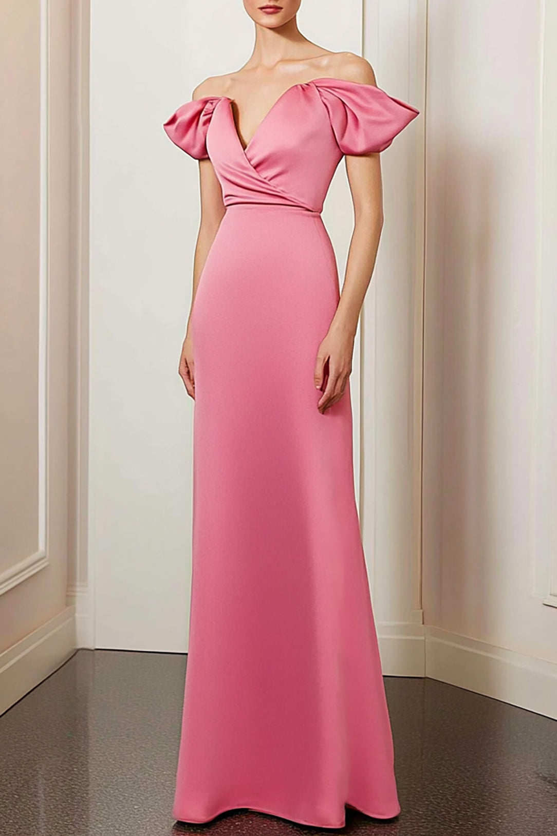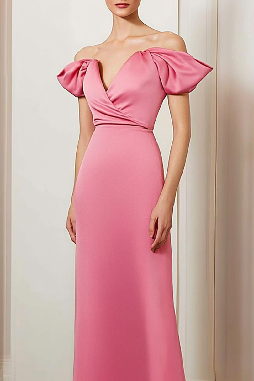 Formal Evening Dress Pink Off-Shoulder Puff Sleeve Floor-Length Dress