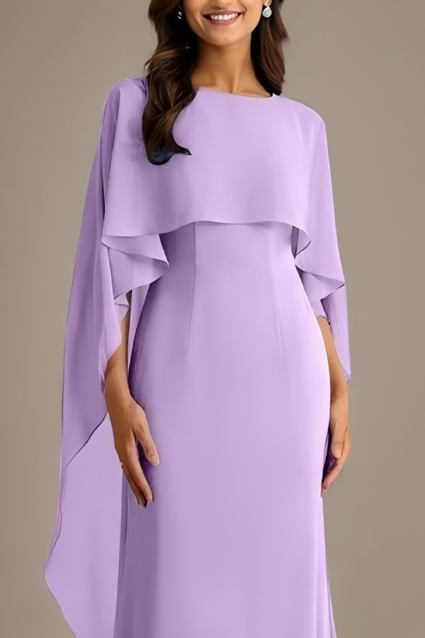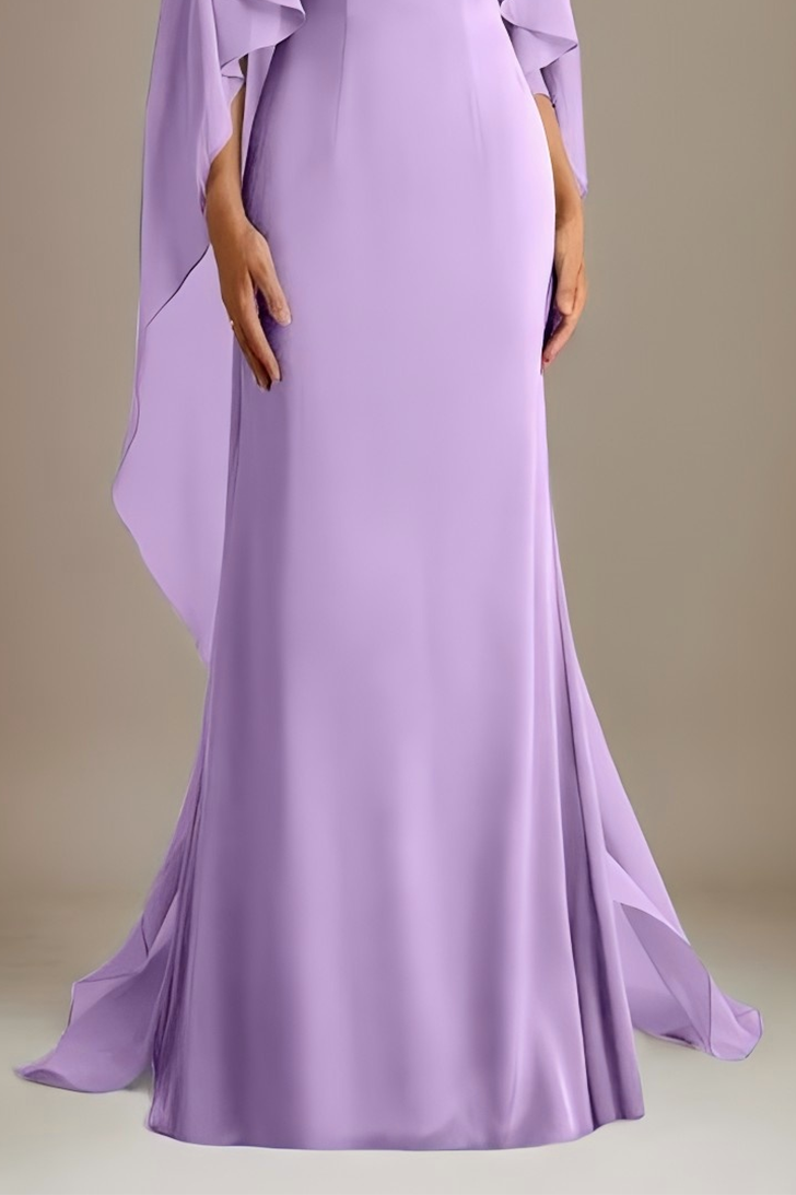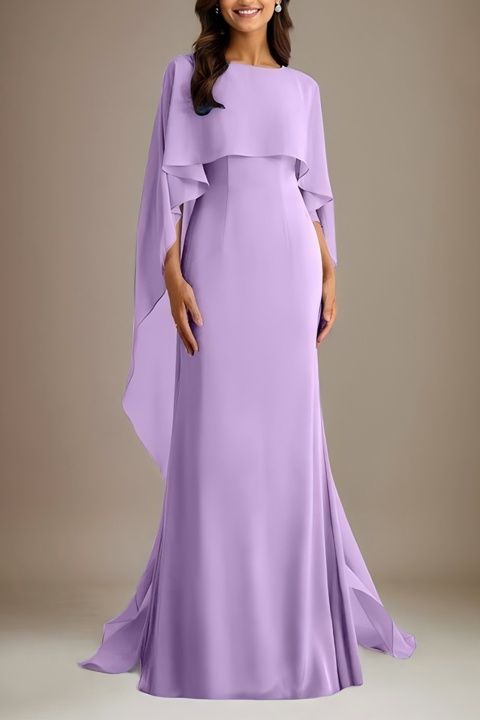 Formal Evening Dress Purple Round Neck Cape Chiffon Floor-Length Gown
