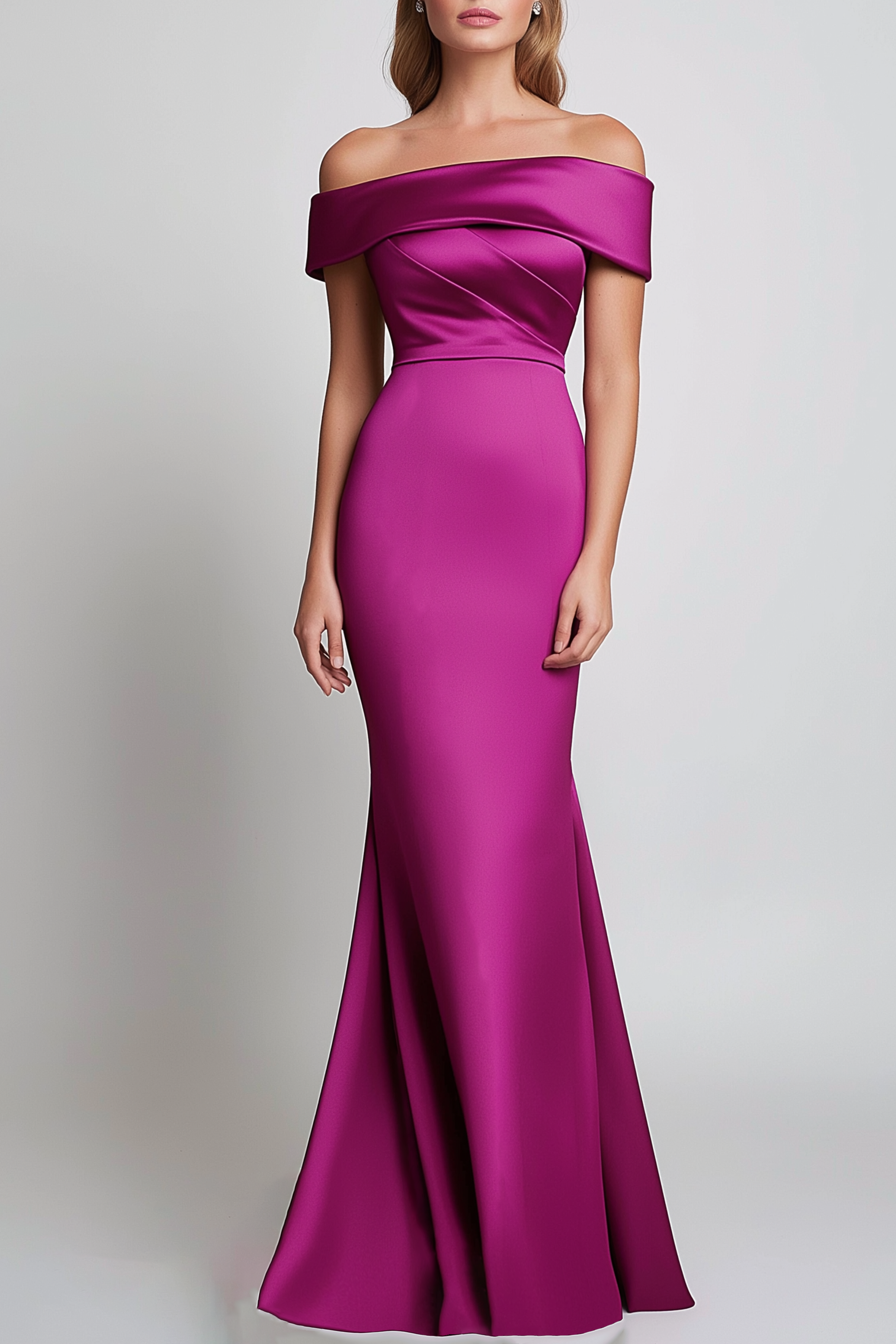 Make a stunning entrance in this purple satin off shoulder mermaid dress. The smooth satin fabric enhances your silhouette while the floor-length design exudes elegance. Perfect for formal galas or black-tie events where you want to leave a lasting impression.