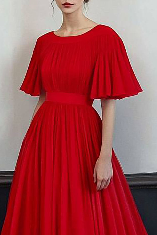 Formal Evening Dress Red Round Neck A-Line Floor-Length Gown