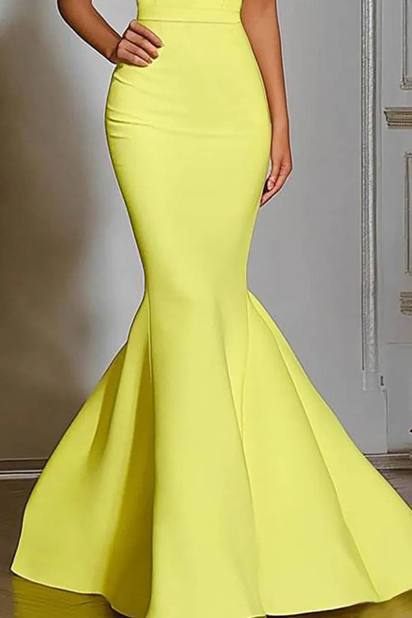 Formal Evening Dress Yellow Sleeveless V-Neck Mermaid Floor-Length Gown